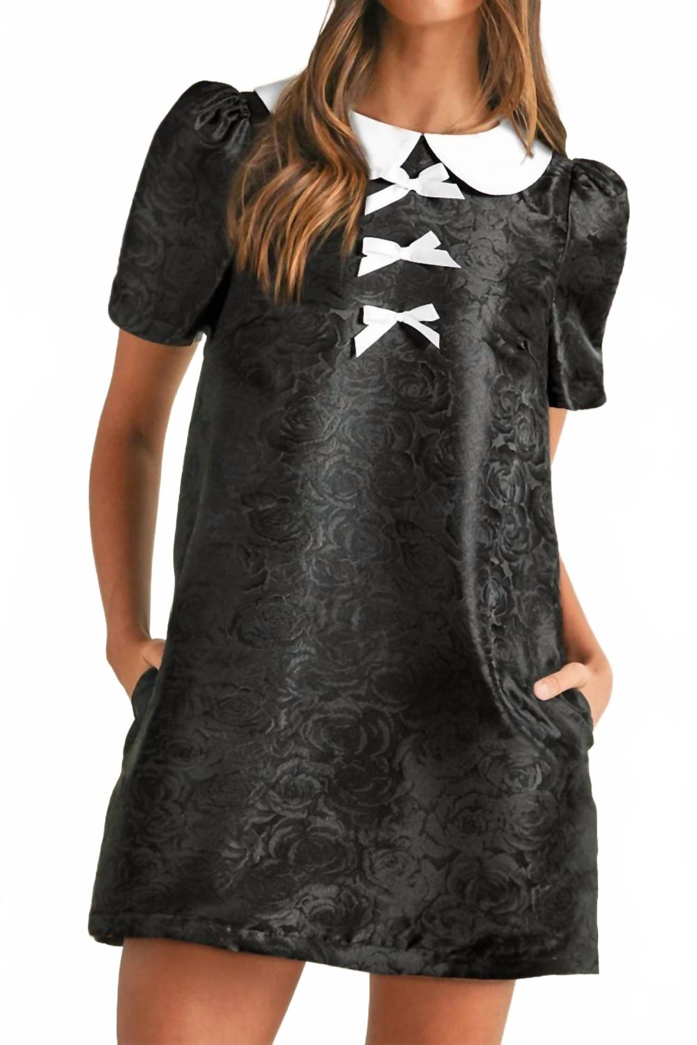 Элегантное мини-платье с цветочным бантом черного цвета Shewin, черный