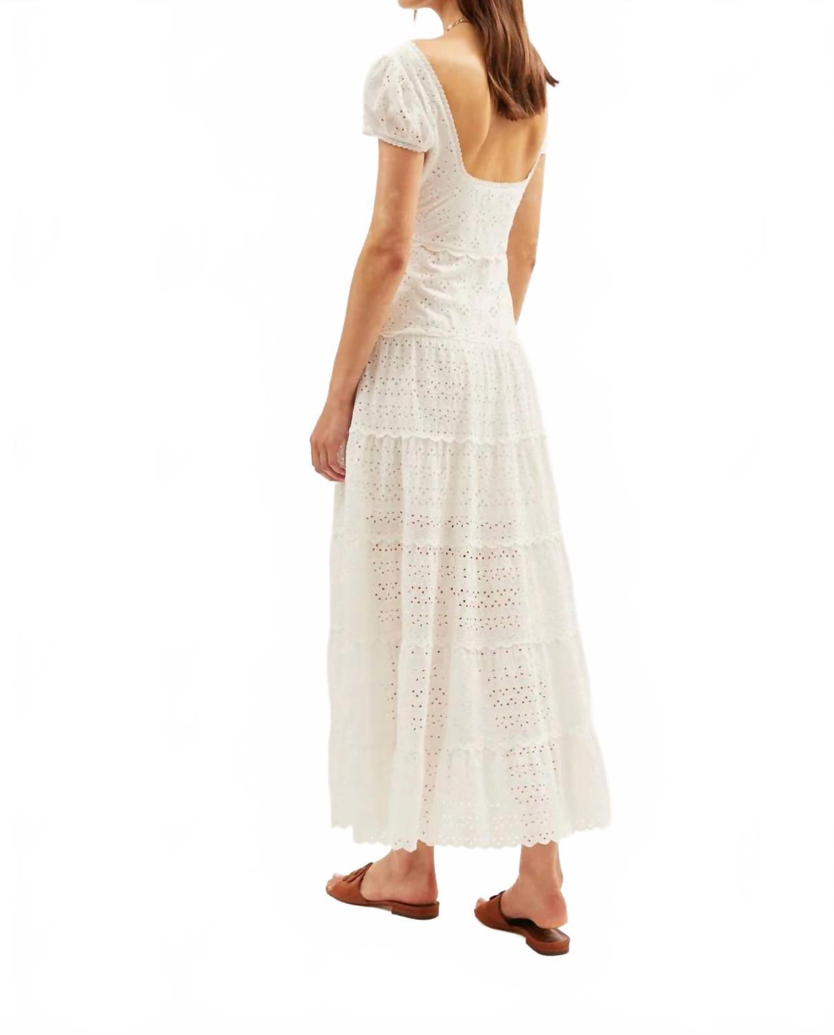 Просто добавьте шлепанцы или мюли, и все готово. Ощутите летний стиль в женском платье Remi Dress от RIXO цвета слоновой кости с рукавами-крылышками, выполненном из текстурированной хлопковой вуали с вышивкой бродери англез. Это платье миди А-силуэта украшено фестончатыми оборками и открытой спиной, удобной для ношения бюстгальтера. Застежка: потайная молния сбоку. Платье идеально подходит для отпуска в стиле бохо-шик, сочетая элегантность и комфорт. Рекомендации по уходу не предусмотрены.