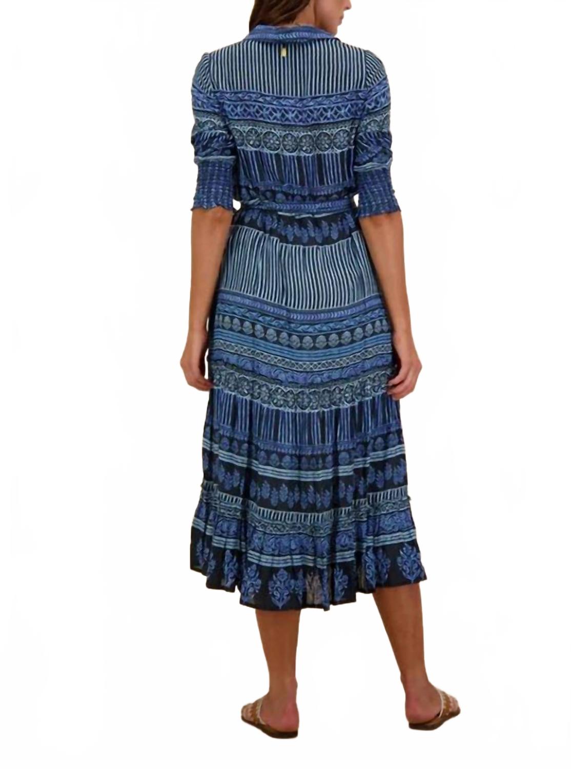 Платье макси Noida от Rubyyaya - непременный атрибут праздничной вечеринки. Платье выполнено из потрясающего джинсового принта в этническом стиле. Это платье свободного кроя с рукавами до локтя и классическим воротником позволяет носить его как платье, так и расстегнутым. Платье А-силуэта из 100% вискозы с практичной застежкой на пуговицы и поясом-завязкой обеспечивает стиль и комфорт. Уход очень прост: машинная стирка отдельно, сушка в стиральной машине и глажка теплым утюгом.