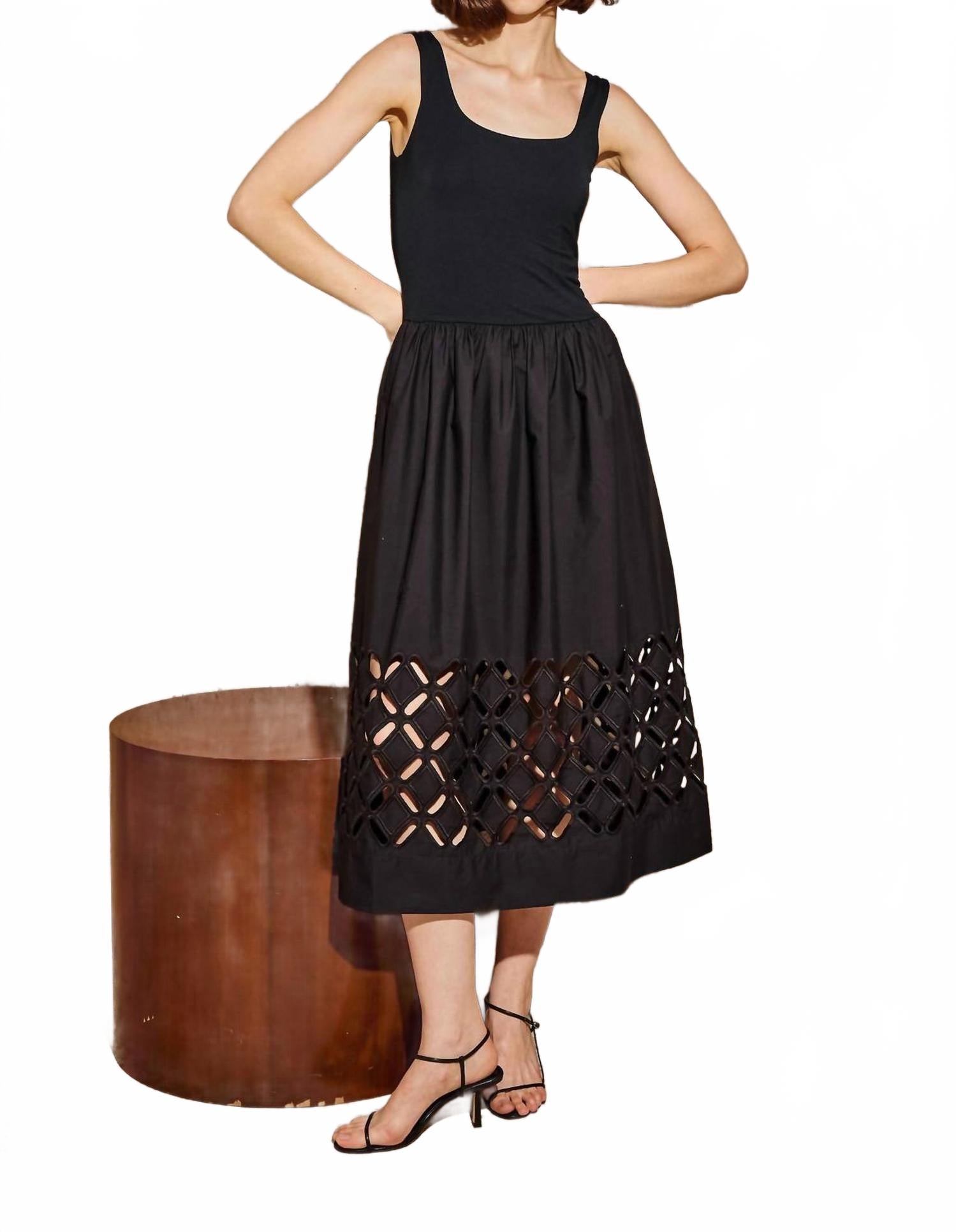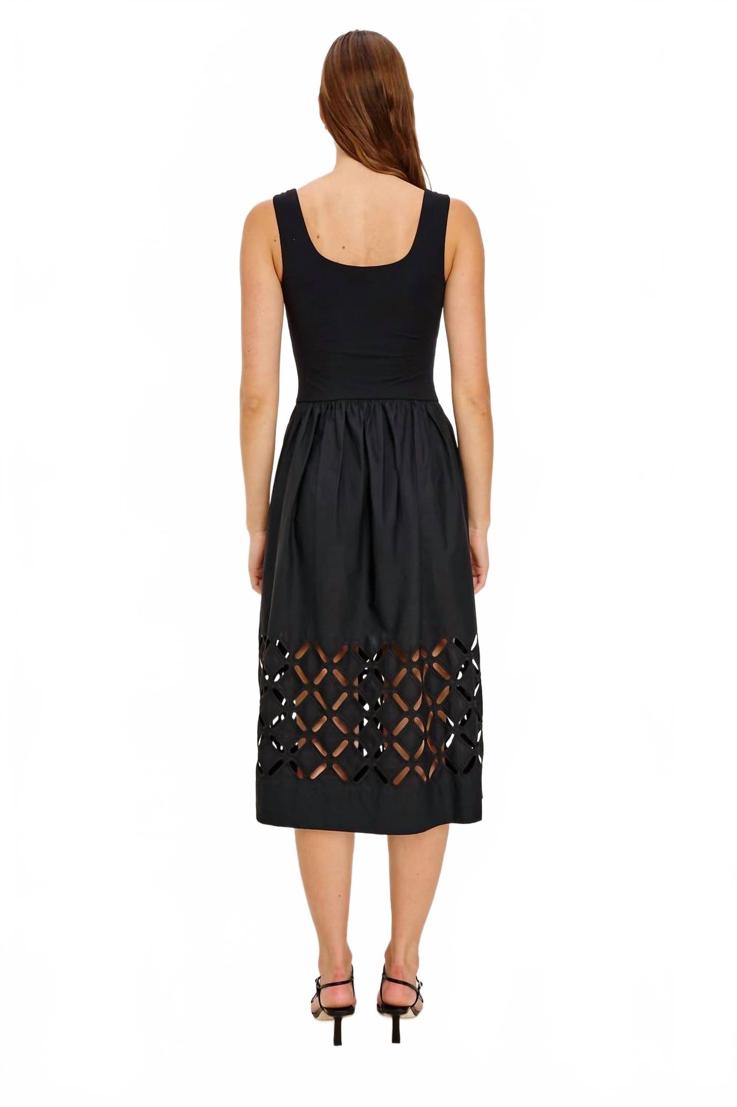 Просто добавьте шлепанцы или мюли, и все готово. Представляем платье Nadya Midi от Rails - минималистичный шедевр, идеально подходящий для вашего следующего званого ужина. Это платье-пуловер без рукавов с круглым вырезом и контрастной юбкой, элегантно присборенной на талии. Платье выполнено из мягкого модала, украшено геометрической вышивкой и дополнено практичными боковыми карманами. Стирать вручную и сушить на веревке, чтобы сохранить текстуру и элегантность.