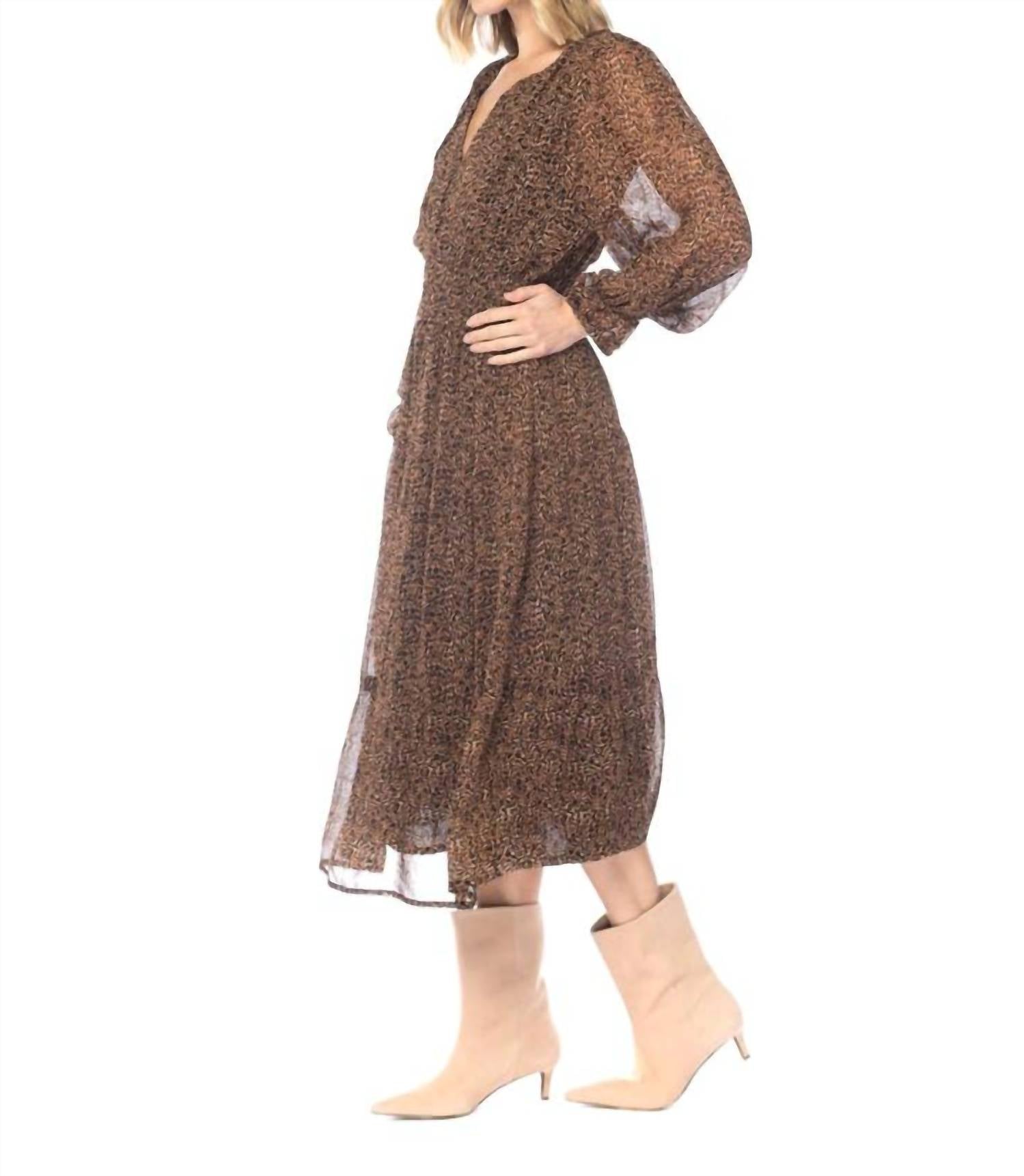 Платье миди настолько универсально, что варианты его ношения безграничны. Платье Arwen Flowy от Tolani гармонично сочетает современную элегантность с культурным наследием. Это женское платье с длинными рукавами изготовлено из 100% вискозы для комфортной посадки. Разработанное в Индии, оно отличается макси-длиной, смелым глубоким V-образным вырезом и эффектным леопардовым принтом. Идеально подходит для осени и станет ярким дополнением к любому гардеробу.
