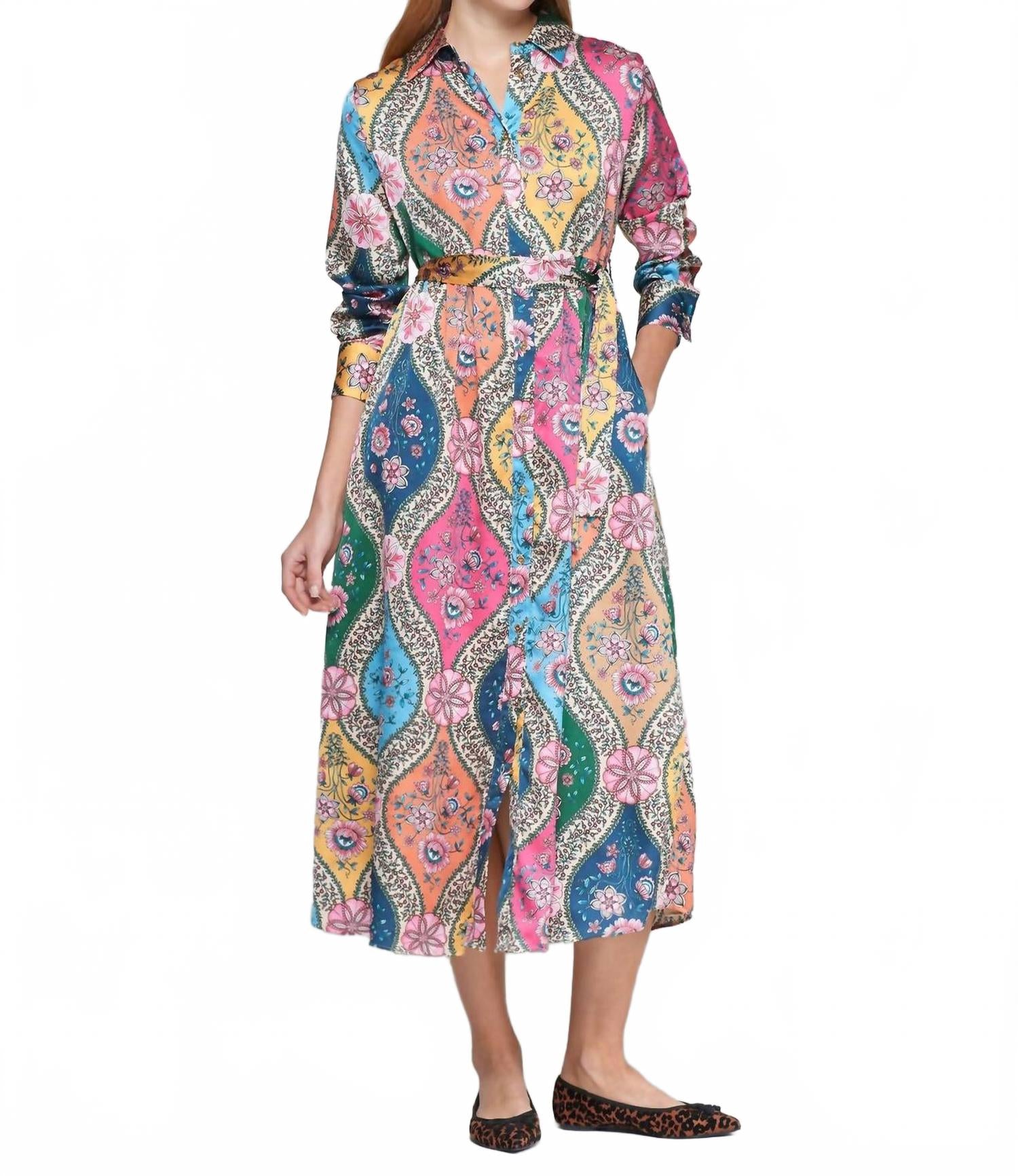 Просто добавьте шлепанцы или мюли, и все готово. Представляем платье-миди Floral от Vilagallo - яркое дополнение к вашему весеннему гардеробу. Это разноцветное платье с длинными рукавами и А-образным силуэтом, цветочным узором и воротником-стойкой в ​​стиле бохо-шик. Платье изготовлено из 100% полиэстера, имеет практичные карманы и застежку на пуговицы для удобства носки. Для ухода за этим эффектным изделием можно стирать в стиральной машине.