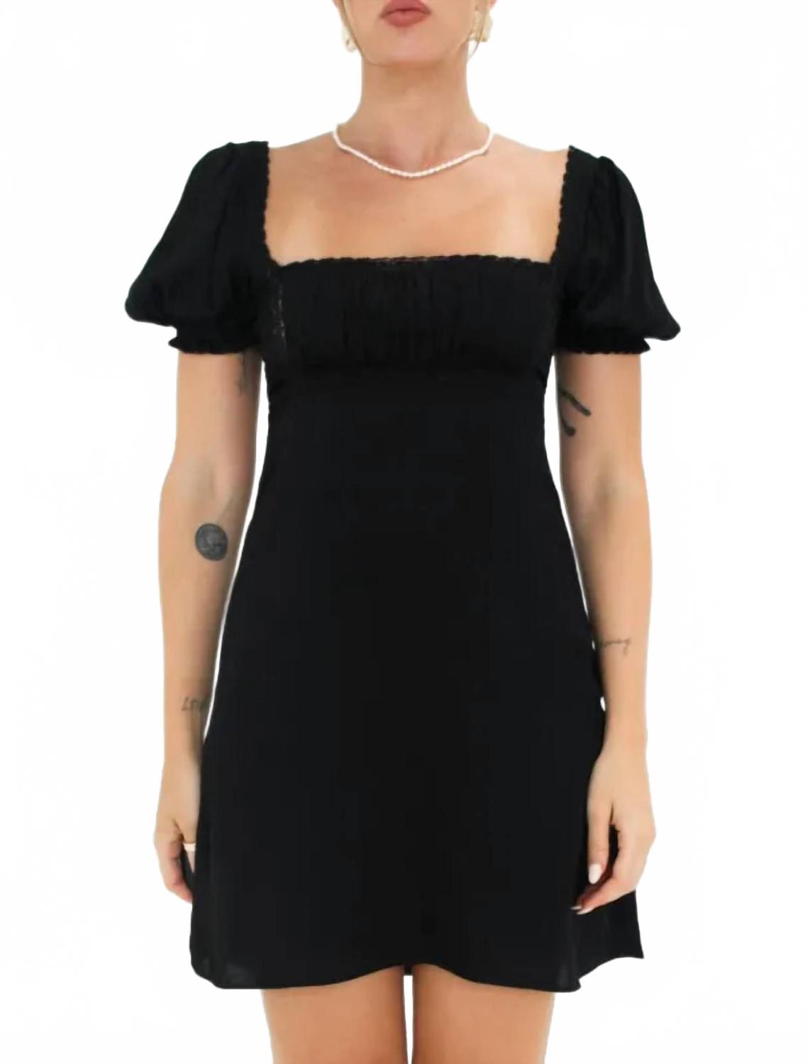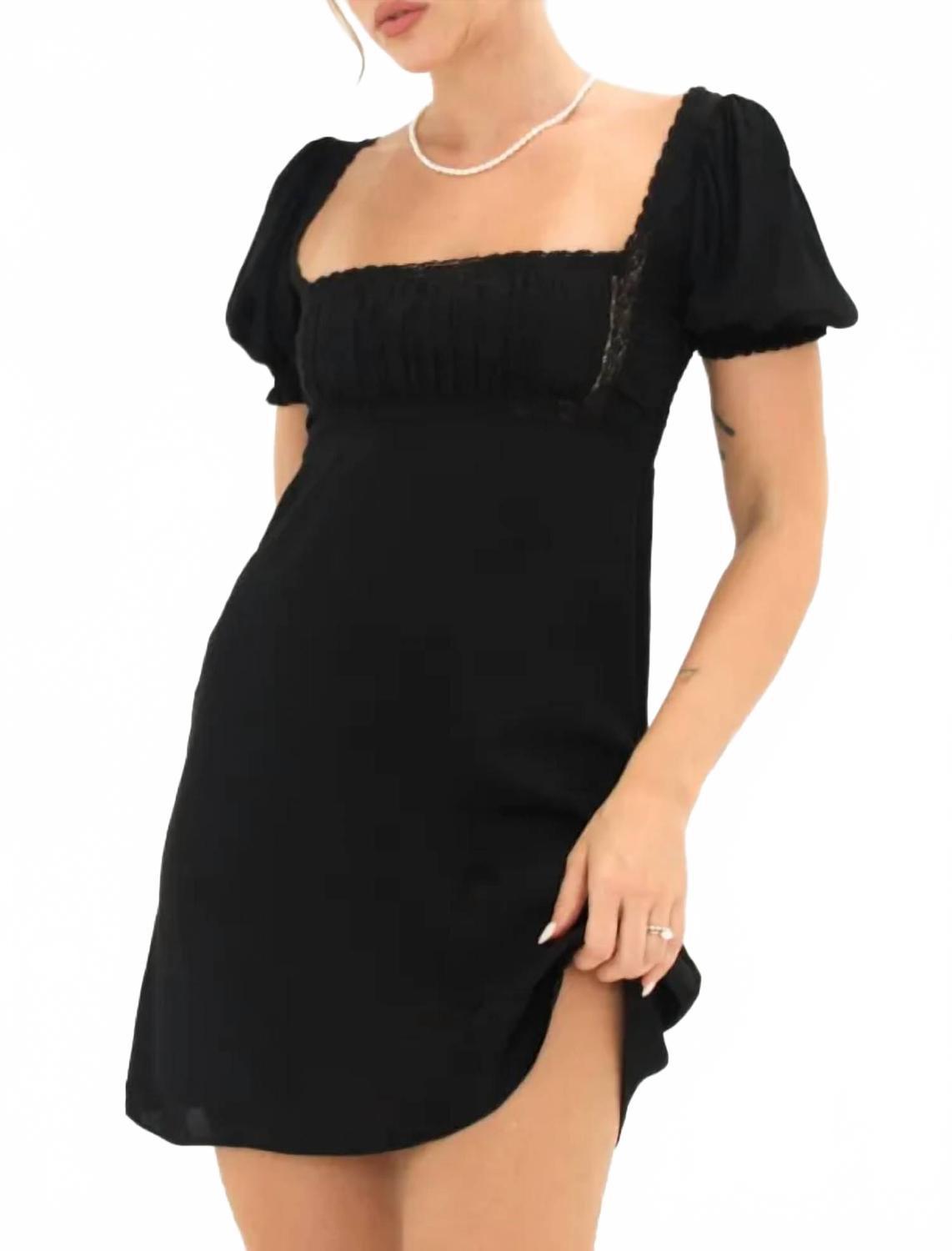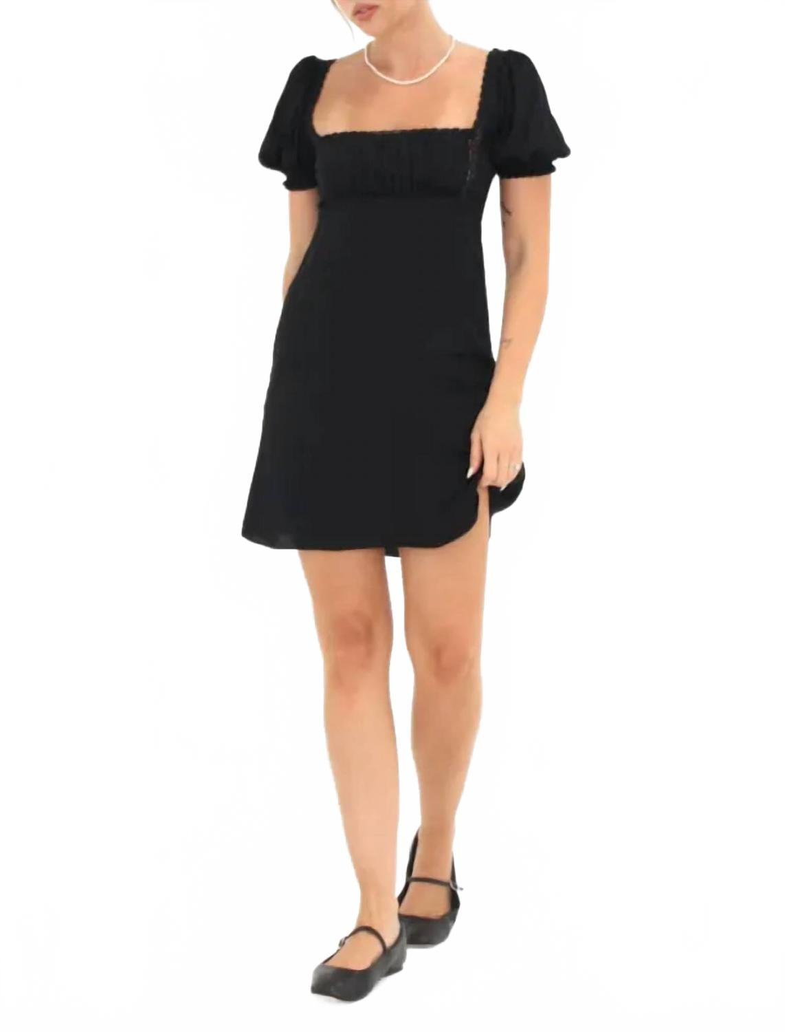 Идеальное мини-платье для теплых месяцев. Ощутите очарование винтажного стиля в мини-платье Napa Valley от Rumored - идеальном варианте для вечерних мероприятий. Это очаровательное черное платье с короткими рукавами-фонариками и изысканной кружевной отделкой, завышенной талией и модным квадратным вырезом. Платье изготовлено из смеси 53% вискозы и 47% искусственного шелка и застегивается на удобную молнию сбоку. Уход: только химчистка.
