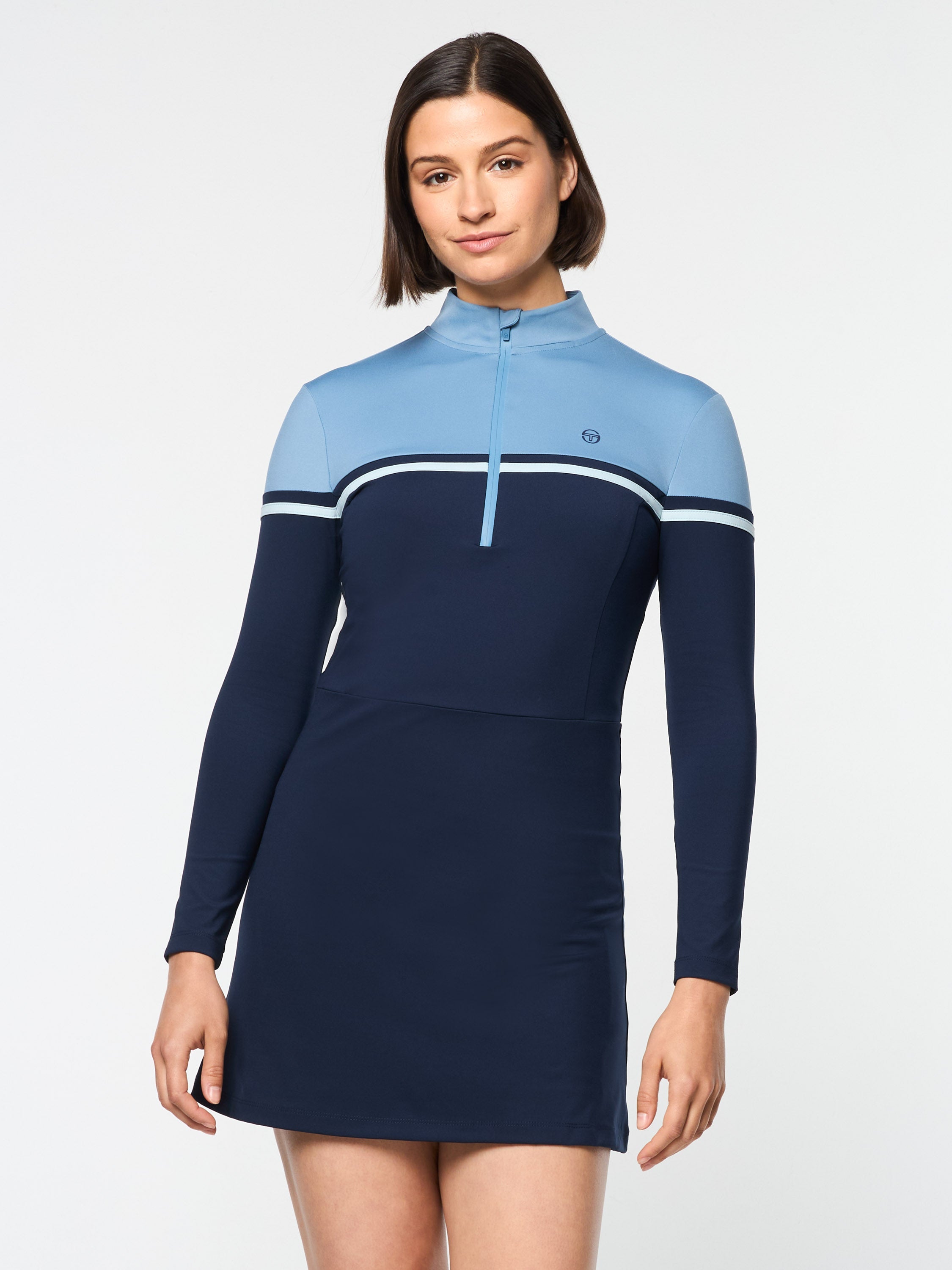 Наше платье Istrana с цветными блоками, ставшее классикой тенниса в наши дни, выполнено из невероятно мягкой ткани, тянущейся в четырех направлениях, которая идеально подходит для тренировок и повседневной жизни. Это приталенное платье с длинными рукавами оснащено водоотталкивающей молнией Aqua Guard спереди для вентиляции и включает в себя поддерживающие шорты с карманами для мячей и телефона для удобства на корте и за его пределами.