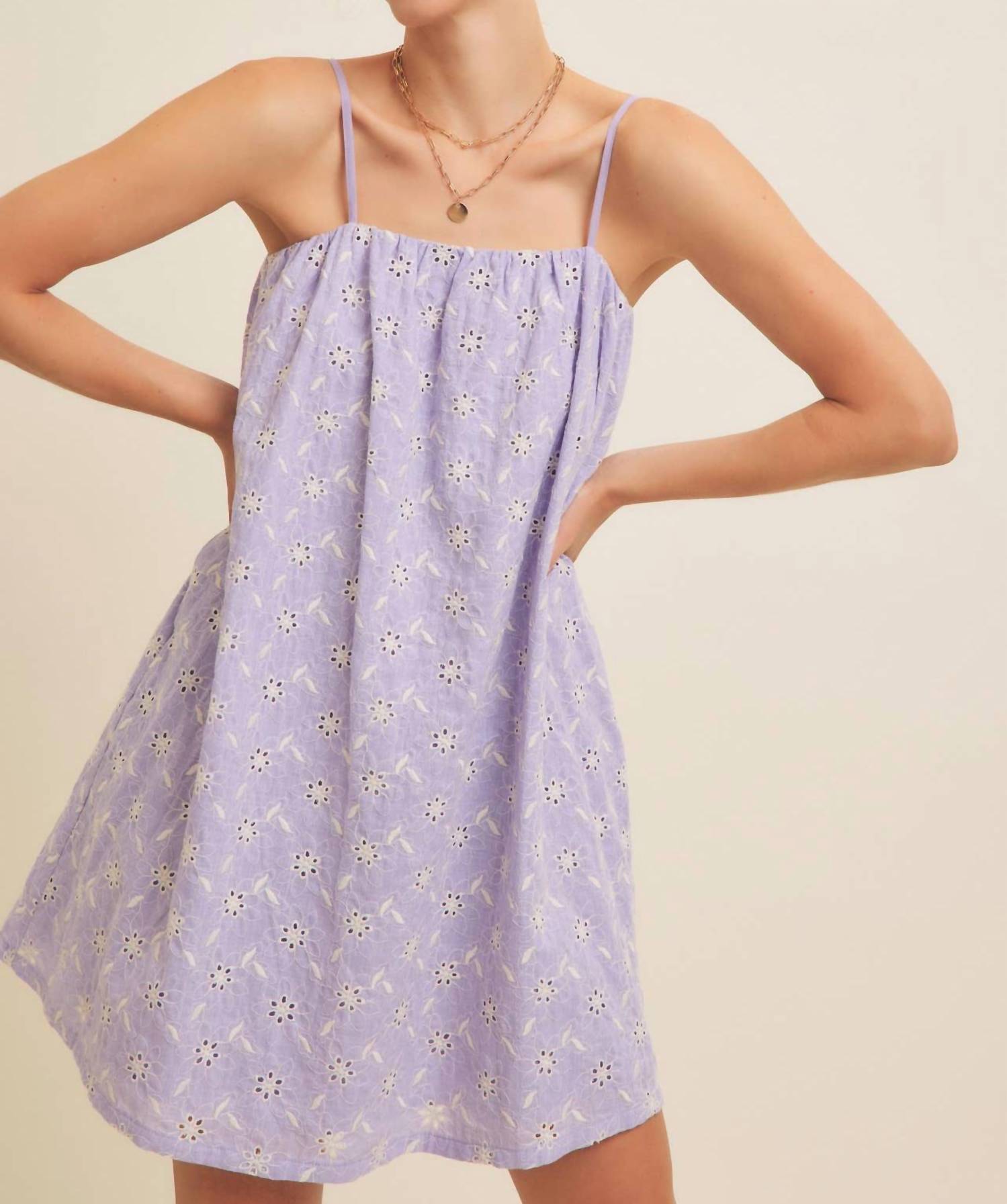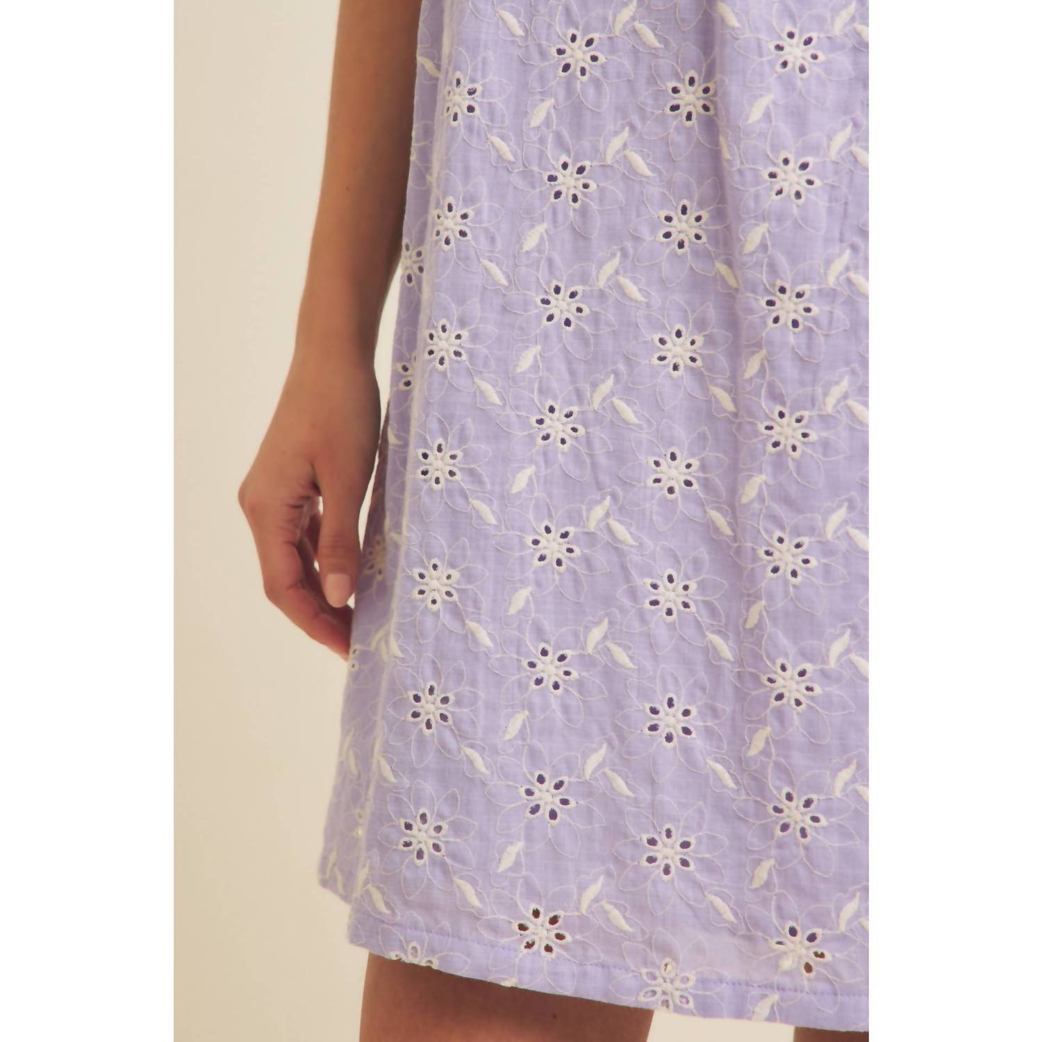 Короткое и воздушное платье для теплых дней. Окунитесь в игривую элегантность с платьем Lavender Kenzie от In February - незаменимой вещью в вашем летнем гардеробе. Это мини-платье украшено нежной цветочной вышивкой, тонкими бретельками и квадратным вырезом. Платье изготовлено из 100% хлопка с подкладкой из полиэстера, обеспечивает комфорт и стиль, идеально подходит для отпуска. Застежка: надевайте. Рост модели 178 см, размер S.