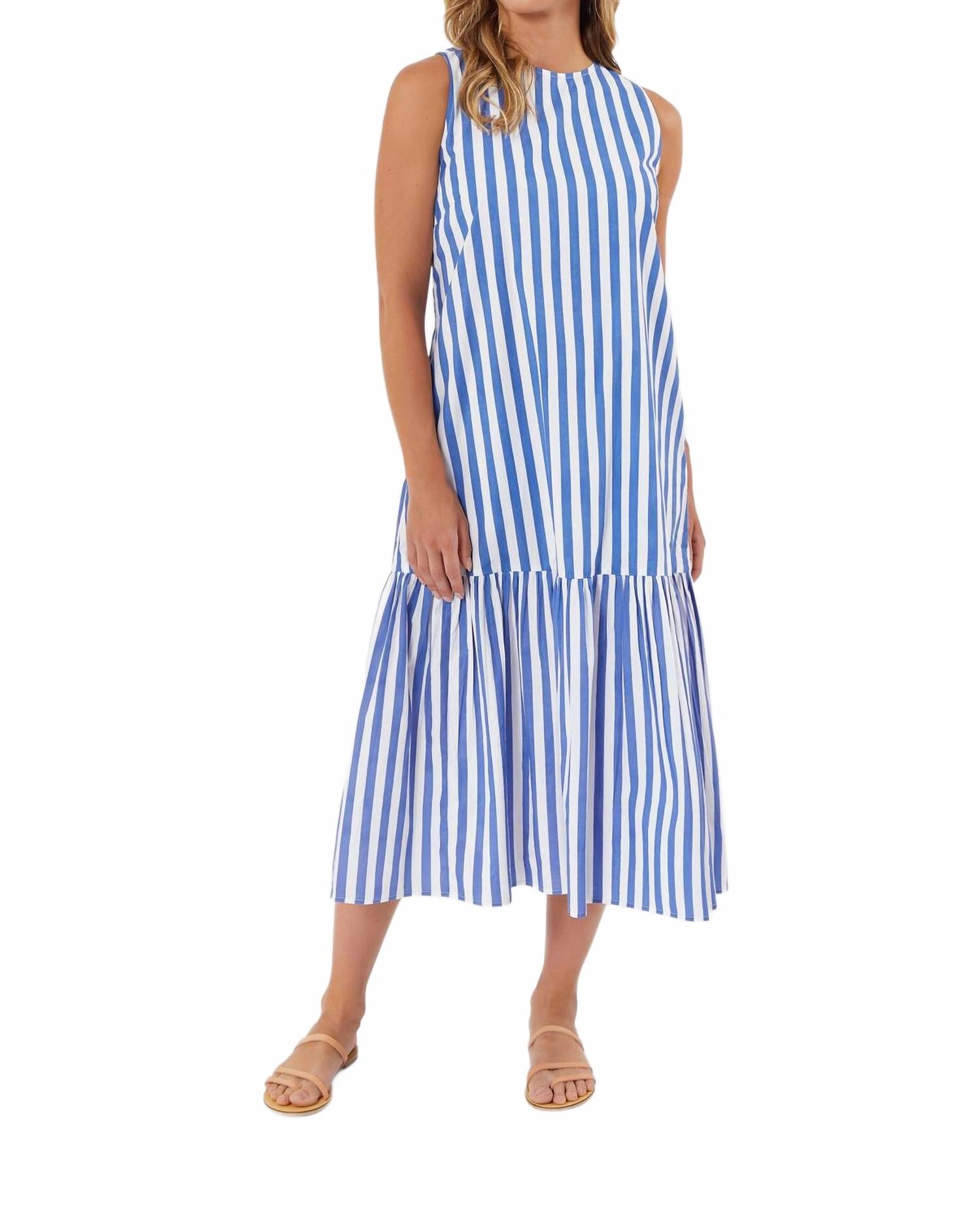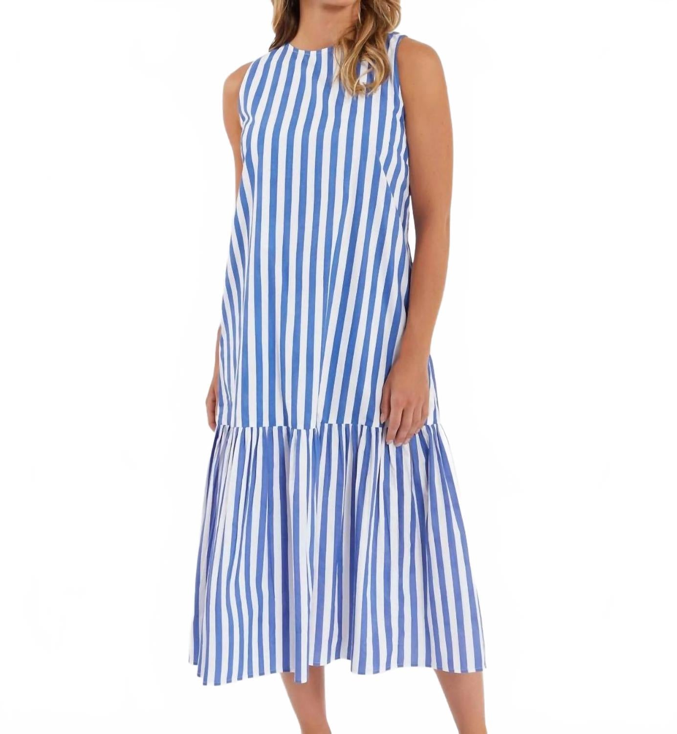 Представляем платье Ella Stripe от Livro - идеальный выбор для летнего отпуска. Это женское платье А-силуэта с освежающим синим полосатым узором, без рукавов и круглым вырезом идеально подходит для пасхальных праздников или любого другого случая в теплую погоду. Длина изделия - миди. Инструкции по уходу: машинная стирка и сушка в стиральной машине для легкого ухода.