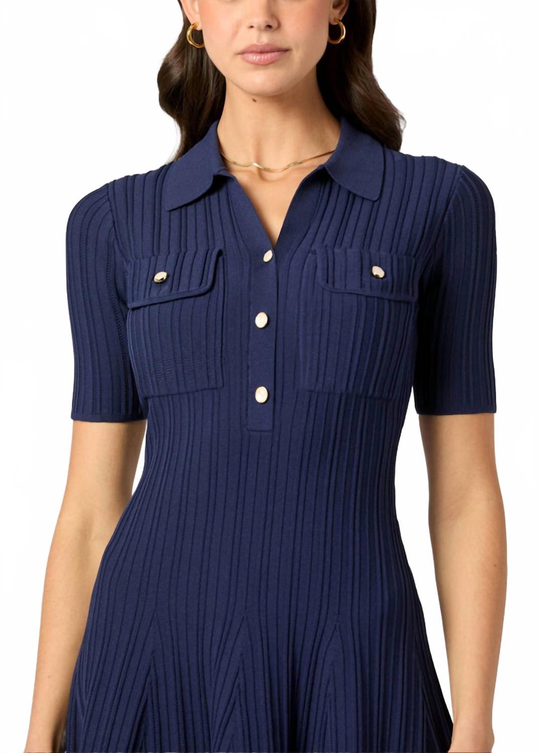 Короткое и воздушное платье для теплых дней. Представляем мини-платье Antonia от Shoshanna - шикарный выбор для летних мероприятий. Это темно-синее платье с однотонным узором, короткими рукавами и классическим воротником идеально подходит для праздничных вечеринок или работы. Изготовлено из смеси вискозы (65% вискозы и 35% нейлона) и обеспечивает комфортную и стильную посадку. Застежка: пуговицы. Уход: только химчистка.