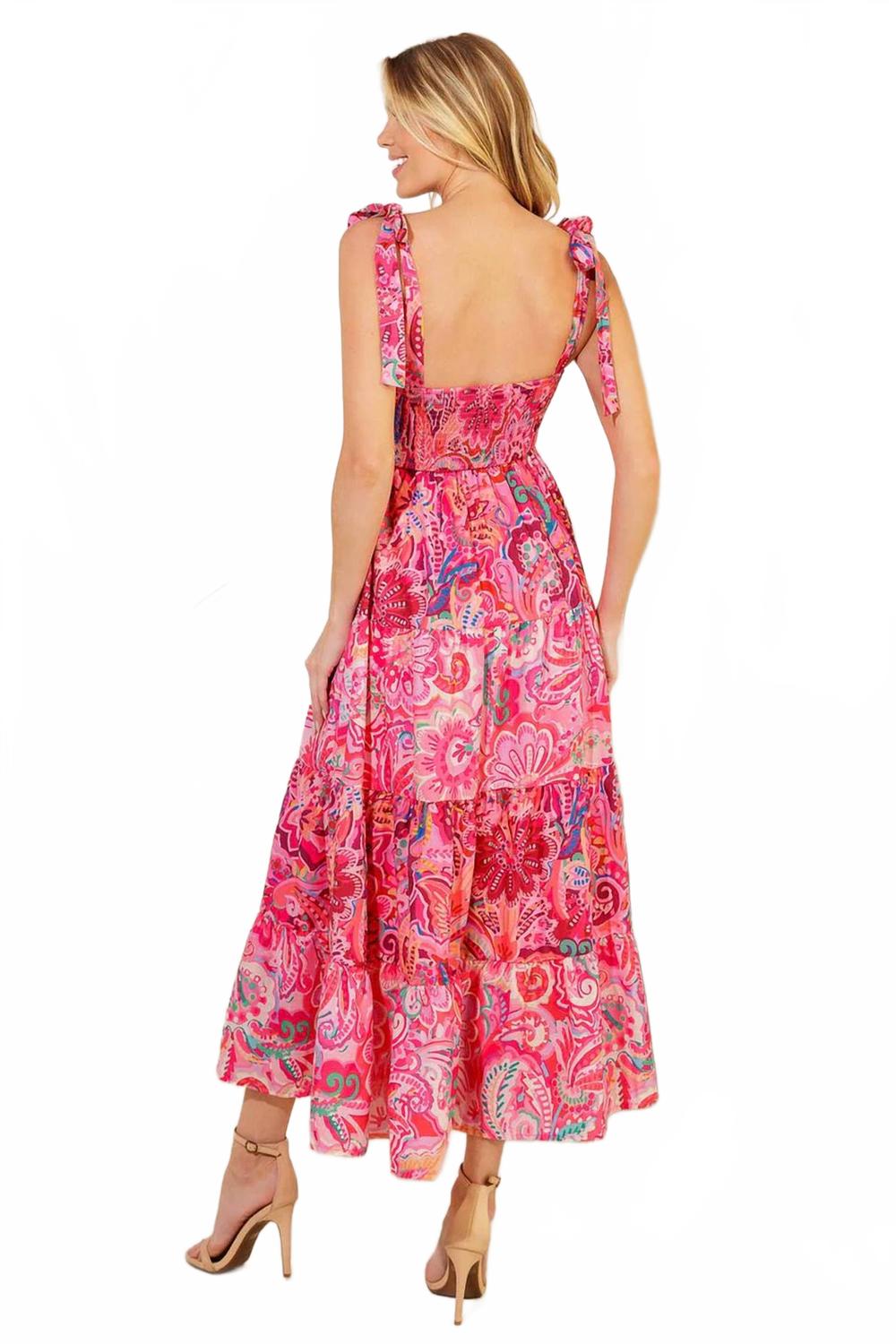 Кто не любит хорошее макси-платье? Это платье вы будете носить каждый сезон. Это принтованное тканое платье миди с прямым вырезом, завязками на плечах, отделкой из атласной ленты, многоярусной юбкой и присборенным сзади лифом. Платье выполнено из 100% полиэстера (как основной, так и контрастной ткани), подкладка - из 100% полиэстера. Рост модели 178 см, размер S. Длина платья для размера S составляет примерно 112 см.