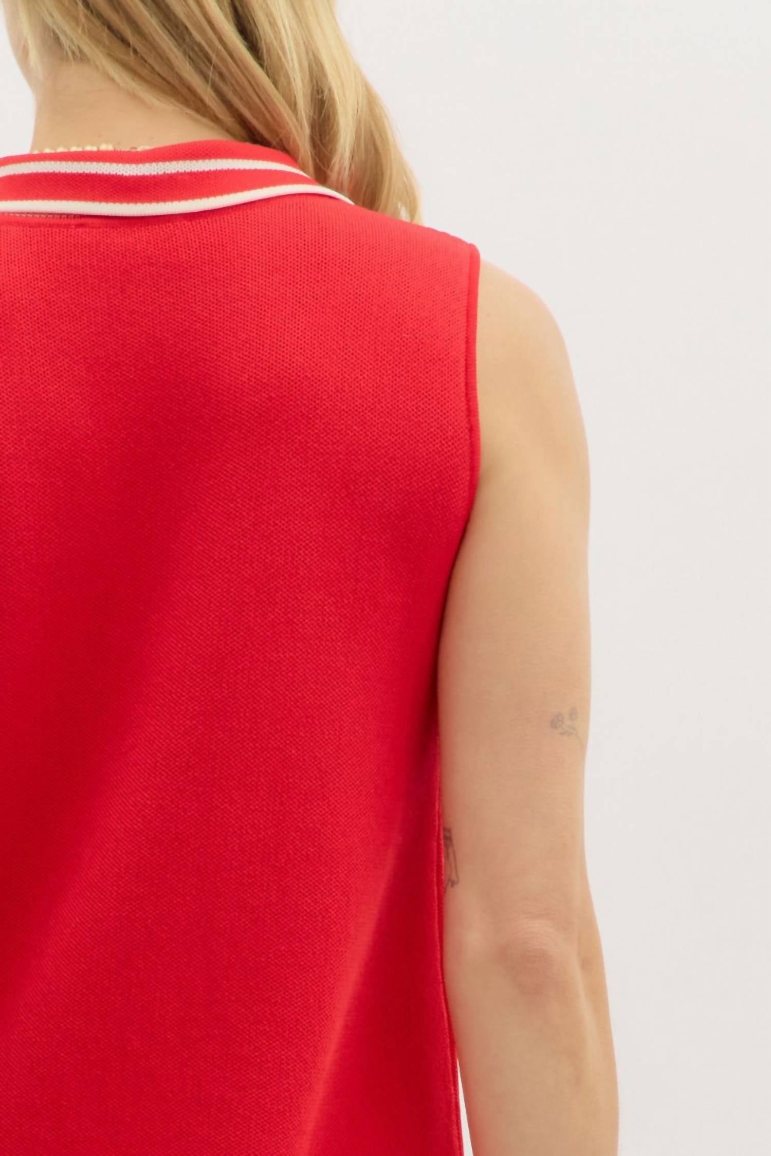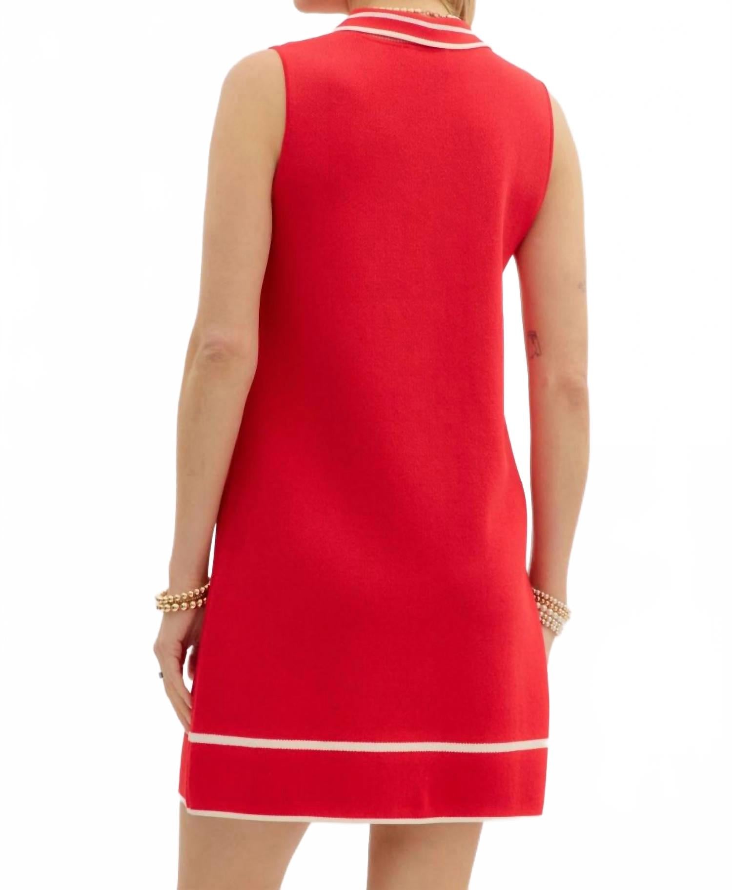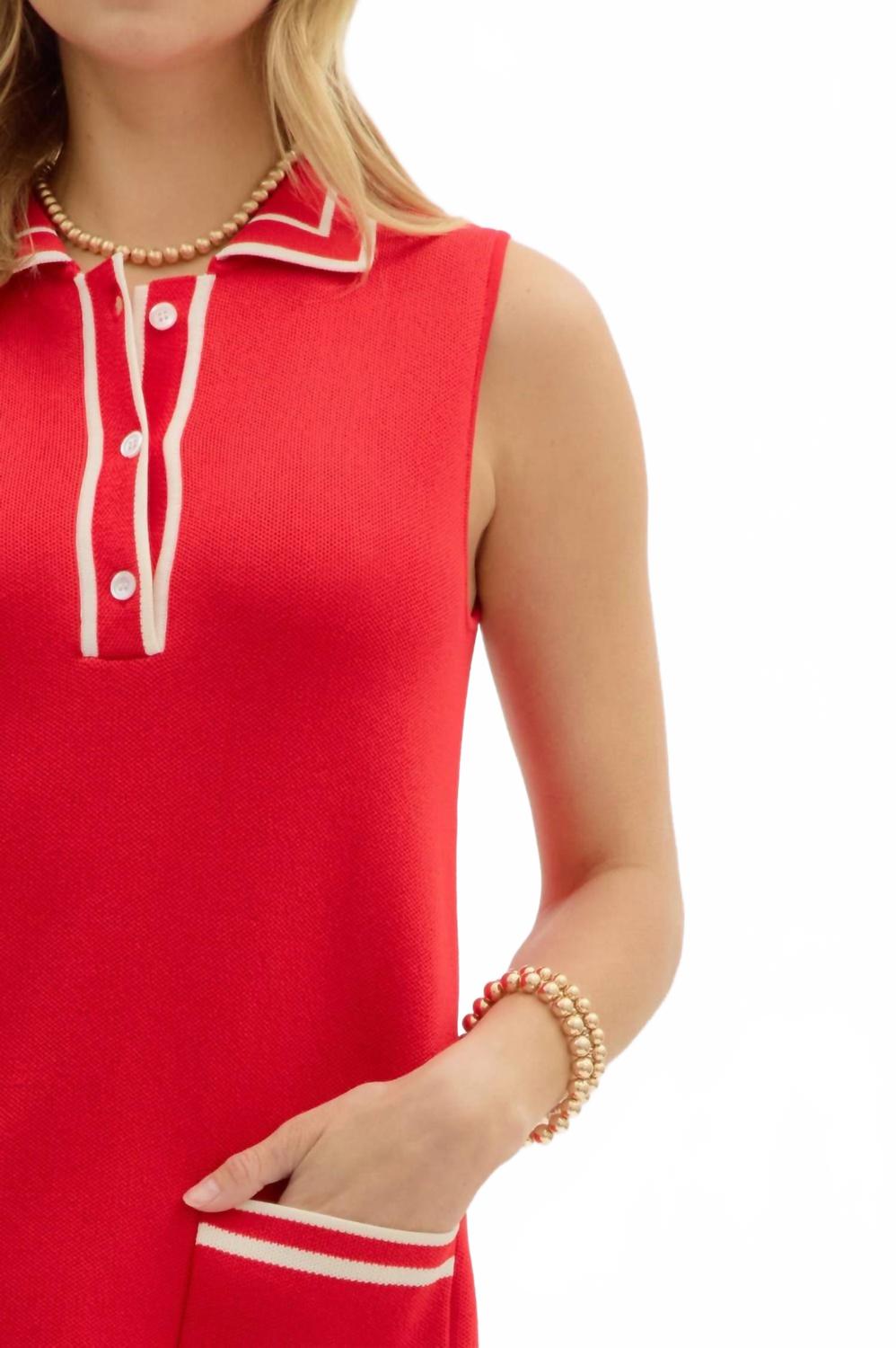 Мини-платье из однотонного трикотажного полотна без рукавов с контрастными полосками. Застежка на пуговицы спереди. Карманы спереди. Без подкладки. Трикотаж.