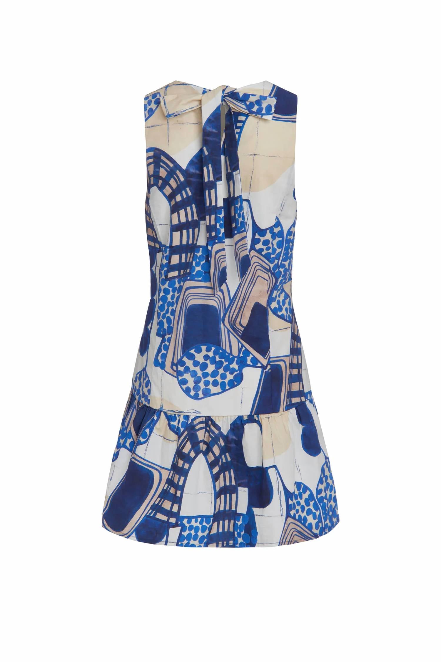 Идеальное мини-платье для теплых месяцев. Заниженная талия. Потайная молния с крючком и петлей по центру спины. Вырез-капелька по центру спины с завязками. 100% хлопок. Полностью на подкладке.