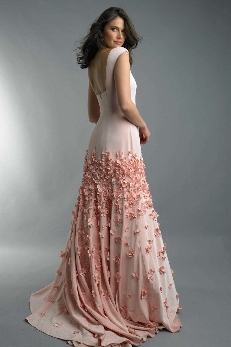 Вечернее платье с V-образным вырезом и цветочным мотивом, вырезанным лазером