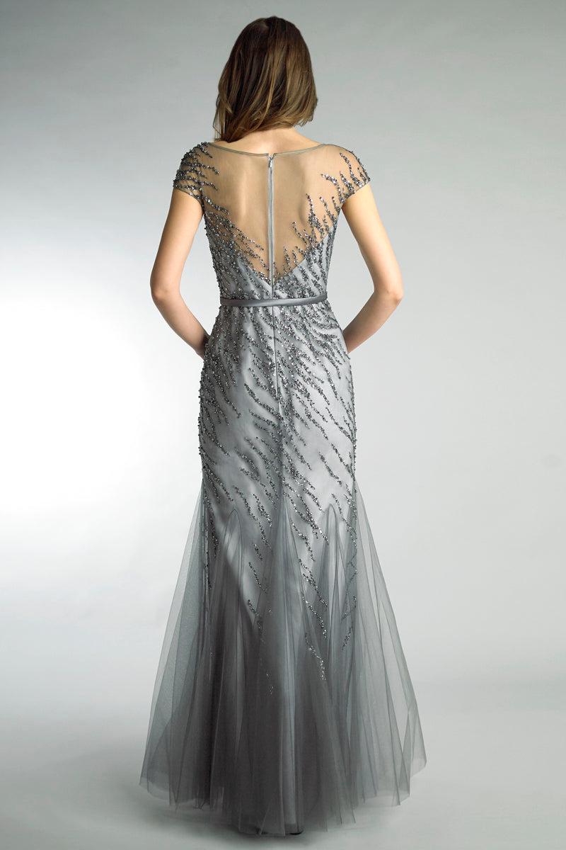 Платье-труба с рукавами-крылышками, расшитое бисером и иллюзией