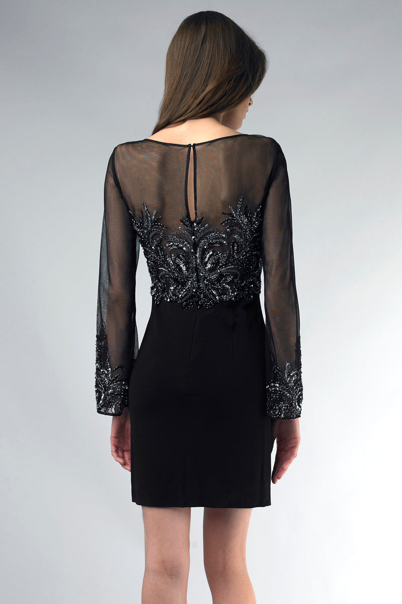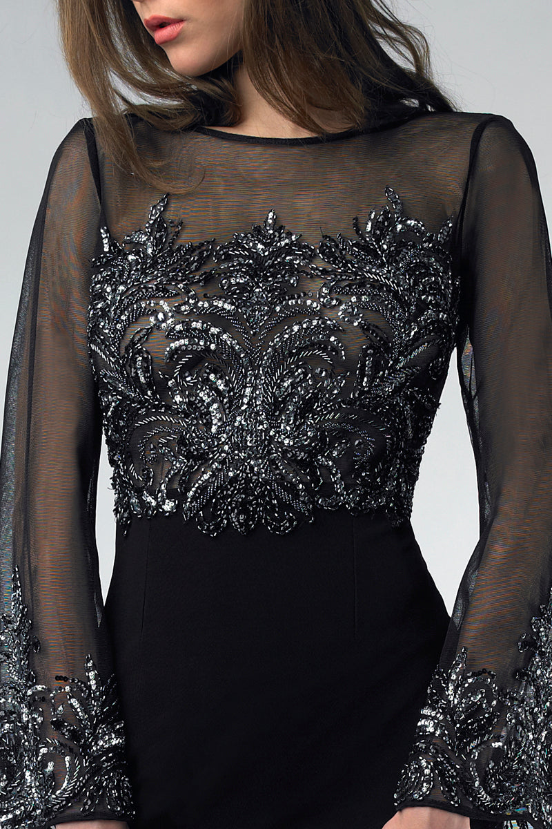 Коктейльное платье с прозрачными рукавами, пайетками и бисером