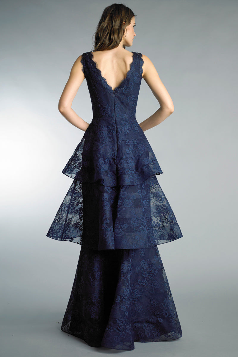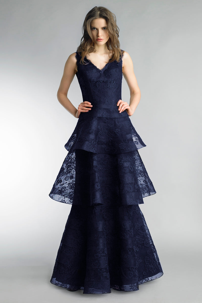 Вечернее платье без рукавов с многоярусной юбкой