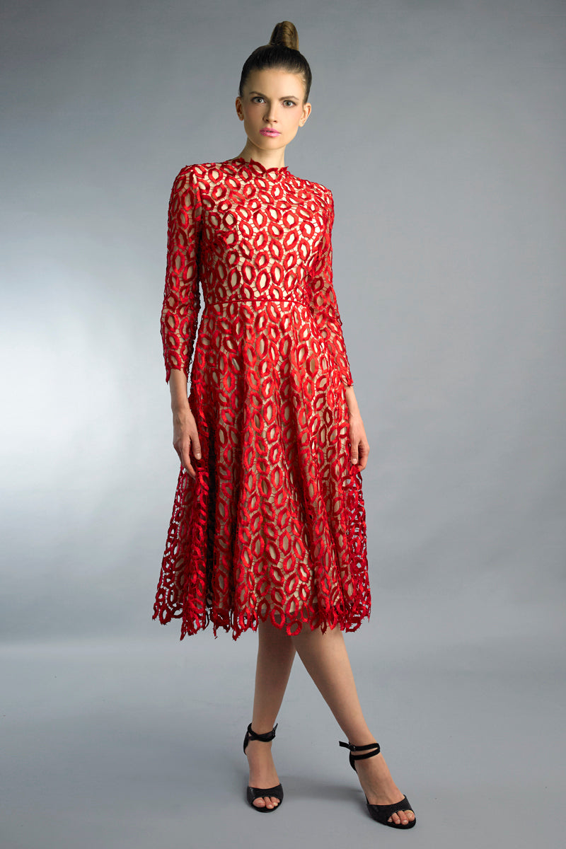 Вышитое коктейльное платье с длинными рукавами