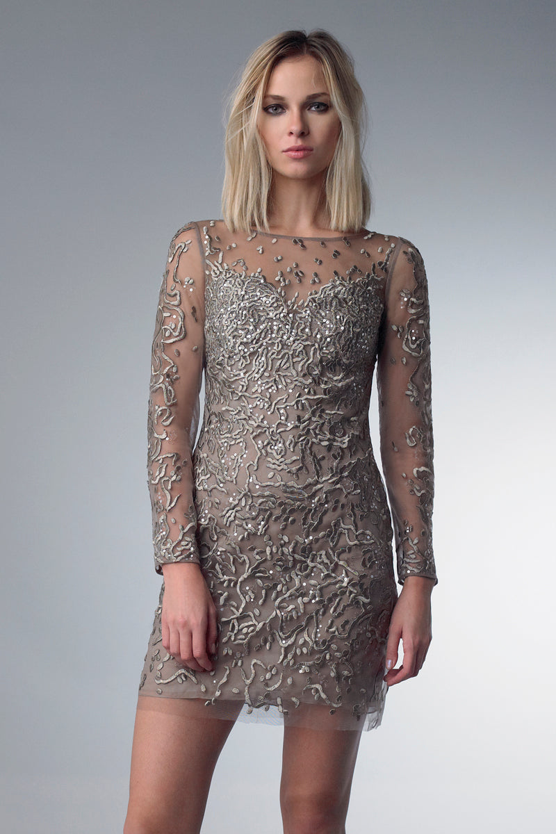 Коктейльное платье с длинными рукавами Basix Black Label, серо-коричневый 22 408₽
