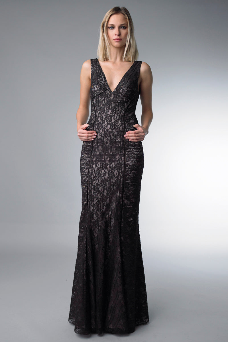 Платье с V-образным вырезом и рукавами Basix Black Label, Black Nude 32 756₽