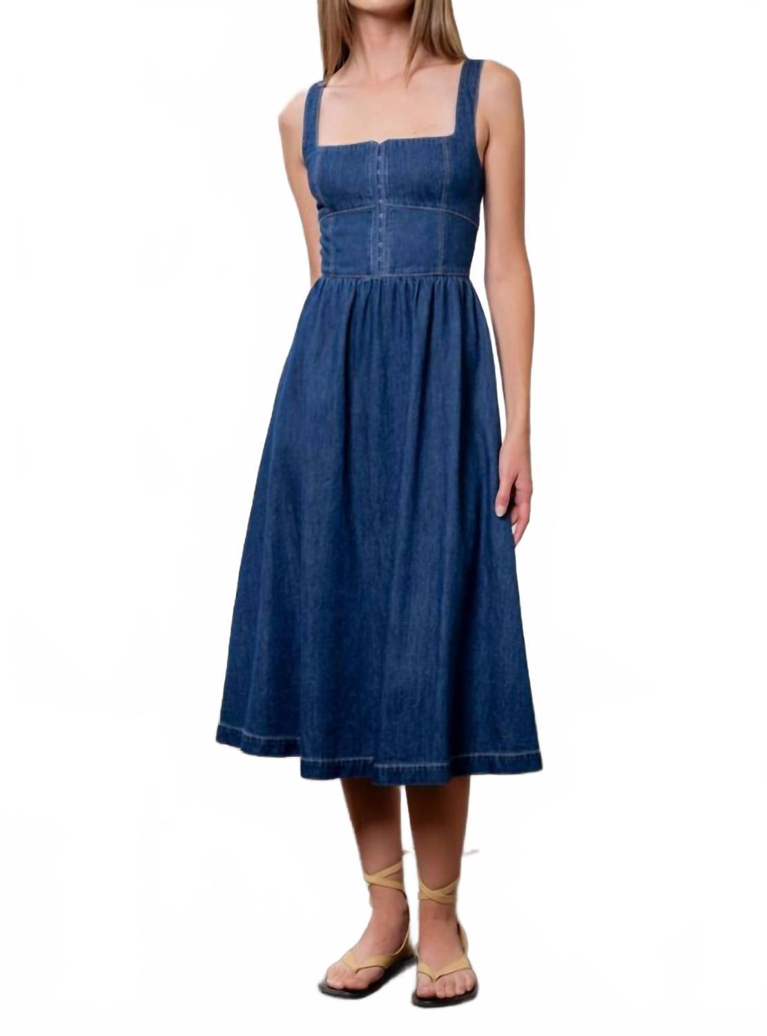 Просто добавьте шлепанцы или мюли, и все готово. Дополните свой летний гардероб стильным и комфортным платьем-миди Nicole Hook Front от Mint. Это однотонное синее платье без рукавов с квадратным вырезом и регулируемыми бретельками идеально подходит для фигуры. Платье выполнено из высококачественного денима, имеет облегающий бюст и элегантную застежку на крючок спереди. Платье идеально подходит для самых разных случаев и легко поддается уходу благодаря машинной стирке и машинной сушке.