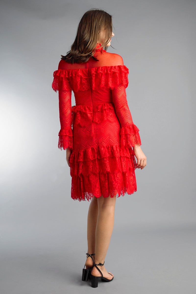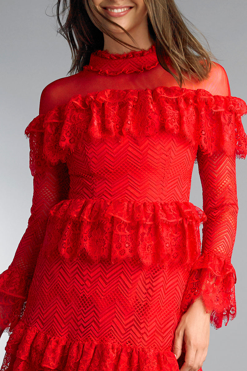 Коктейльное платье с длинными рукавами Basix Black Label, красный