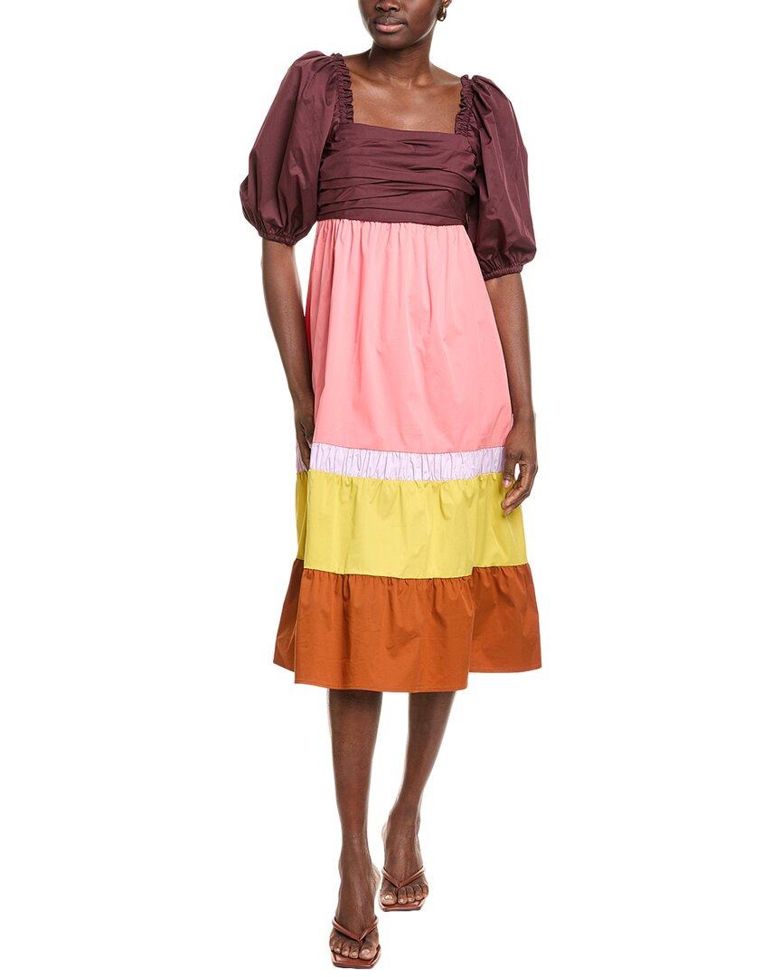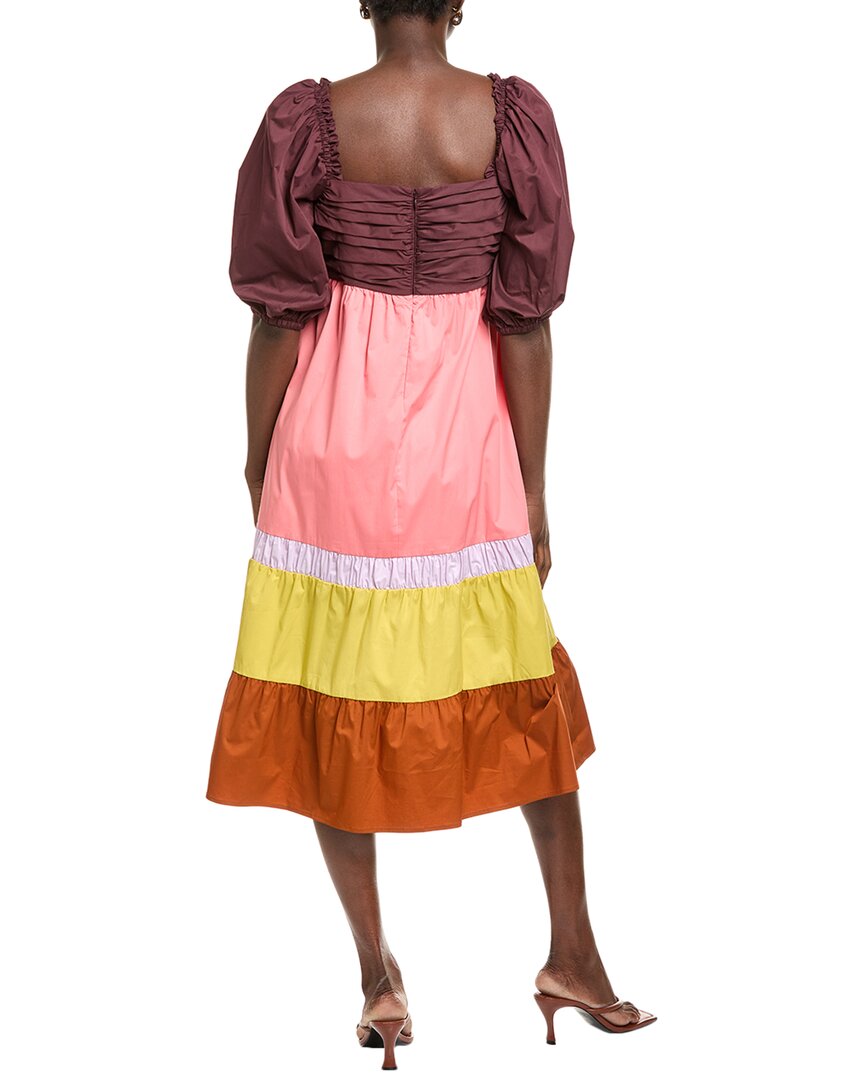 Представляем потрясающее платье миди CROSBY by Mollie Burch Emerson в красивом цветном узоре Dusk Colorblock. Лиф платья отделан рюшами, рукава-фонарики до локтя, карманы в боковых швах и многоярусная юбка создают элегантный и женственный образ. Платье изготовлено из 100% хлопка, оно удобное и стильное. Центральная молния сзади позволяет легко надевать его, а длина миди (примерно 122 см от плеча до подола) идеально подходит для любого случая. Готовитесь ли вы к особому событию или просто хотите разнообразить свой повседневный образ, это платье - must-have в гардеробе каждой женщины. Не забудьте сдать это импортное платье в химчистку, чтобы оно выглядело безупречно.