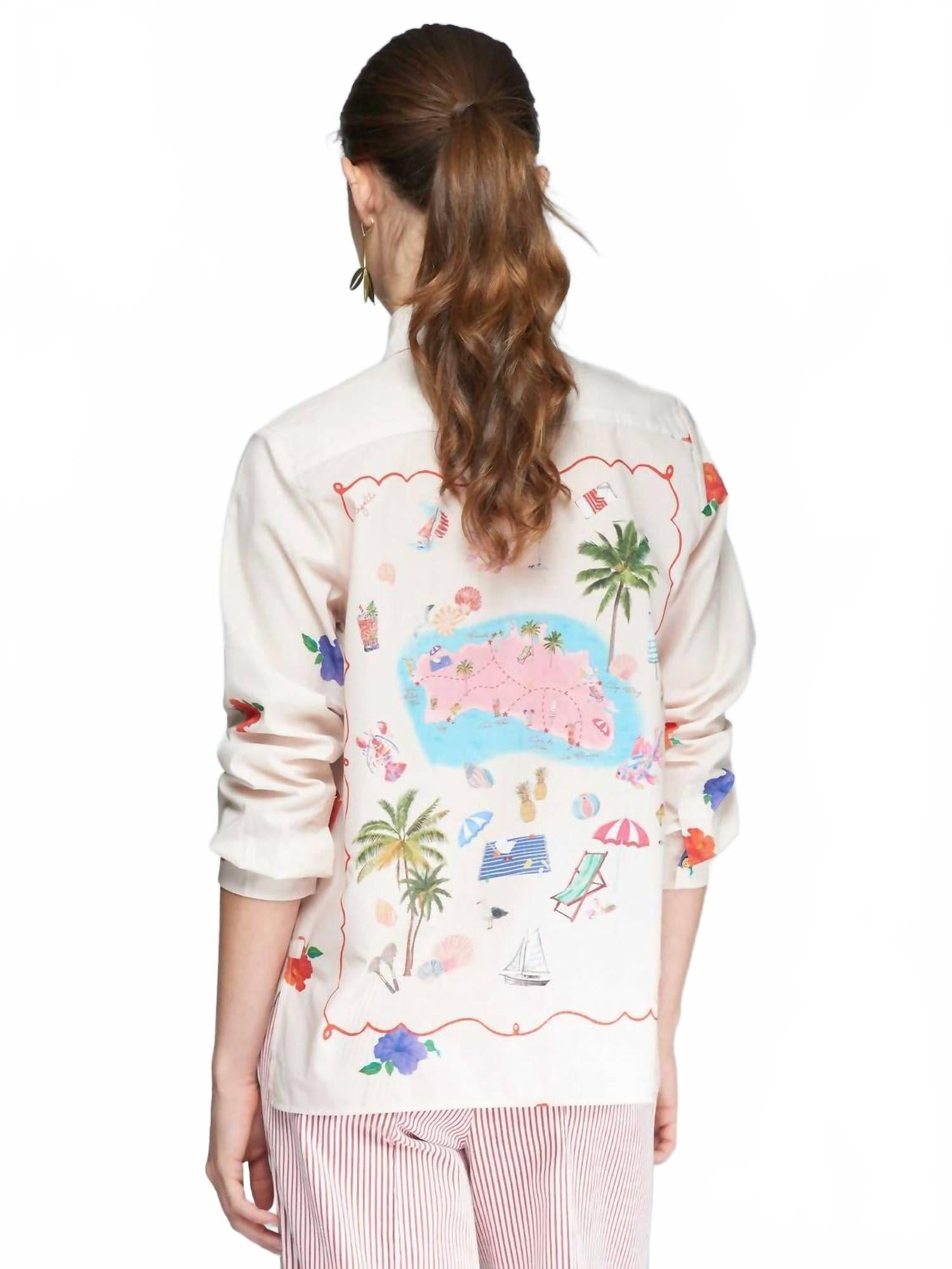 Идеально сшитая и мягкая на ощупь. Откройте для себя пляжную рубашку Isabella Beach от Vilagallo - восхитительное дополнение к вашему летнему гардеробу благодаря длинным рукавам и разноцветному принту пейсли. Эта женская рубашка украшена очаровательным силуэтом Менорки на спине и изготовлена ​​из 100% хлопка - идеальный вариант для теплых дней отпуска. Застежка спереди на золотистые пуговицы дополняет свободный крой, добавляя нотку бохо-шика. Застежка: пуговицы.