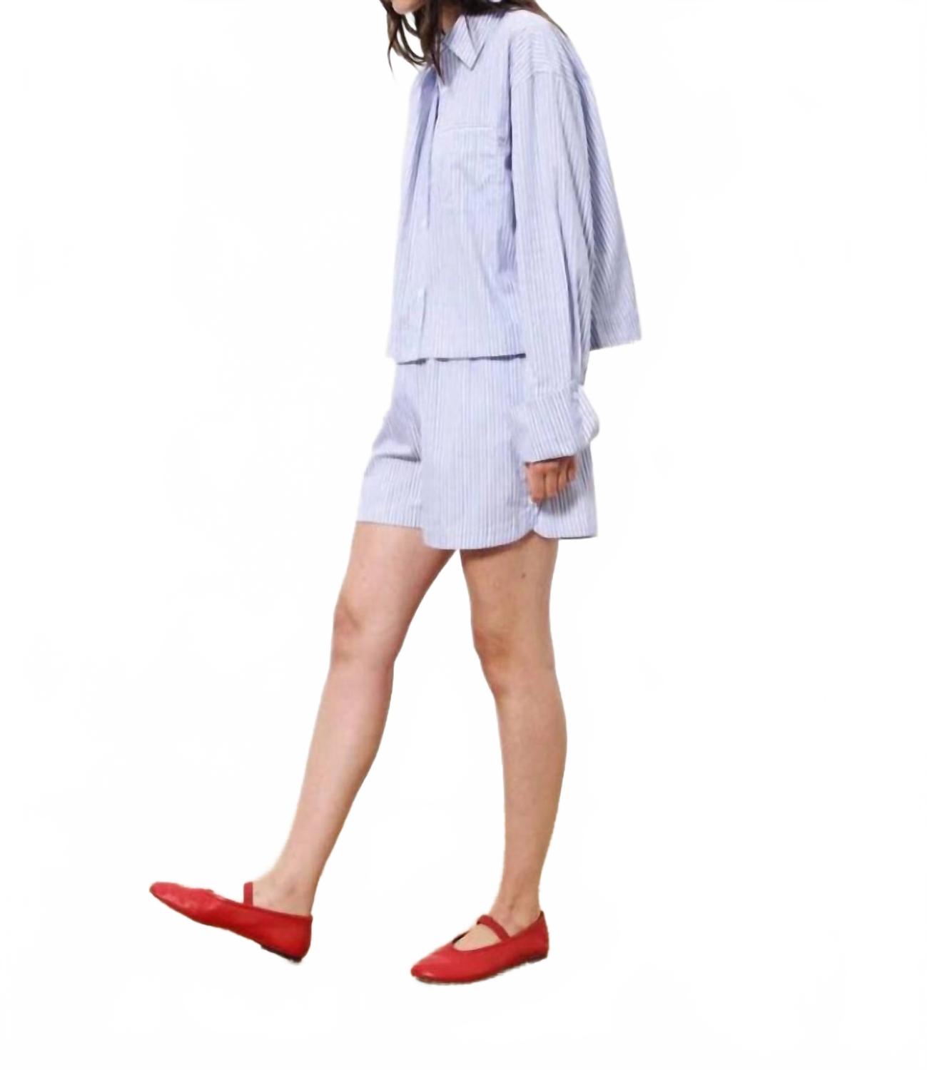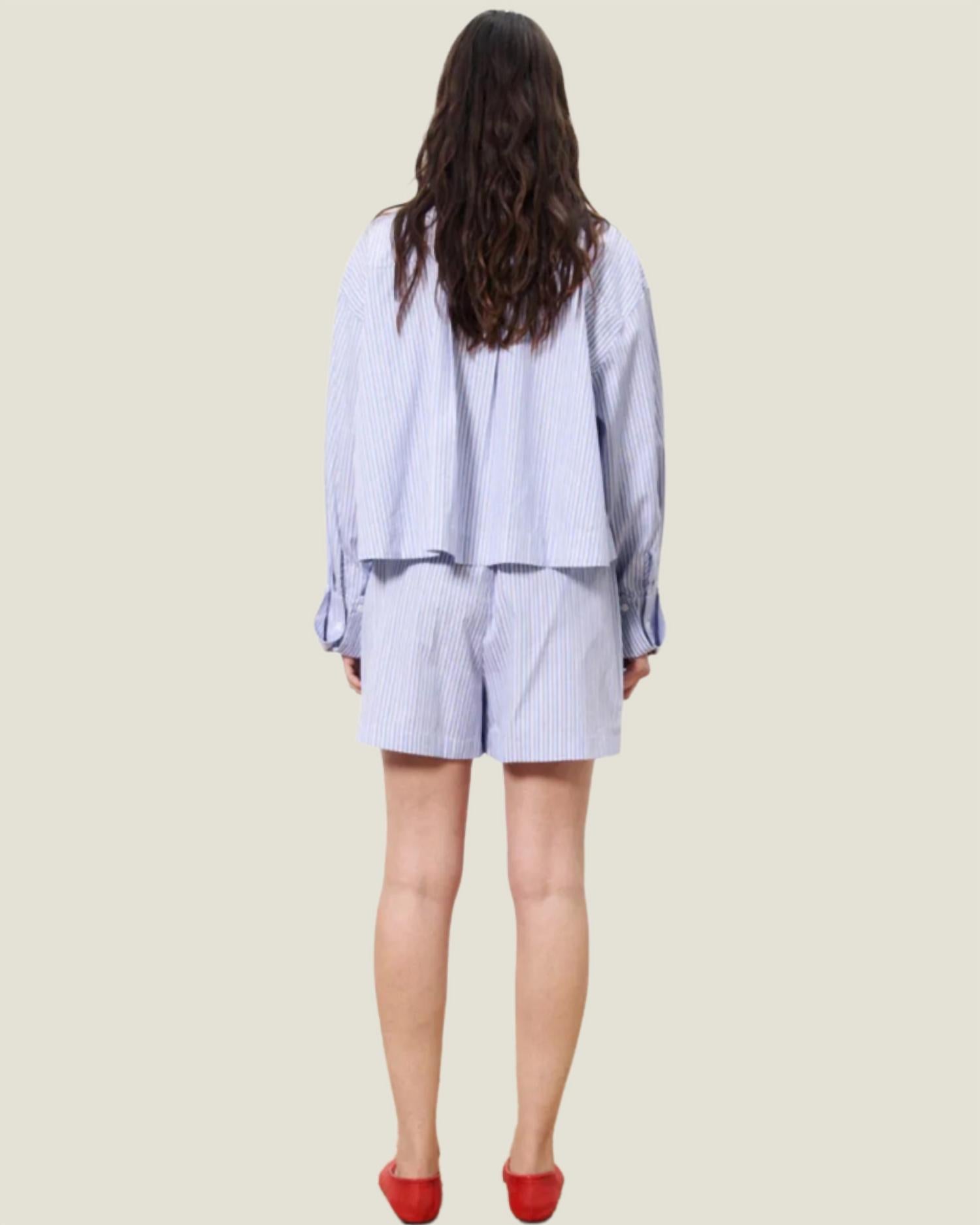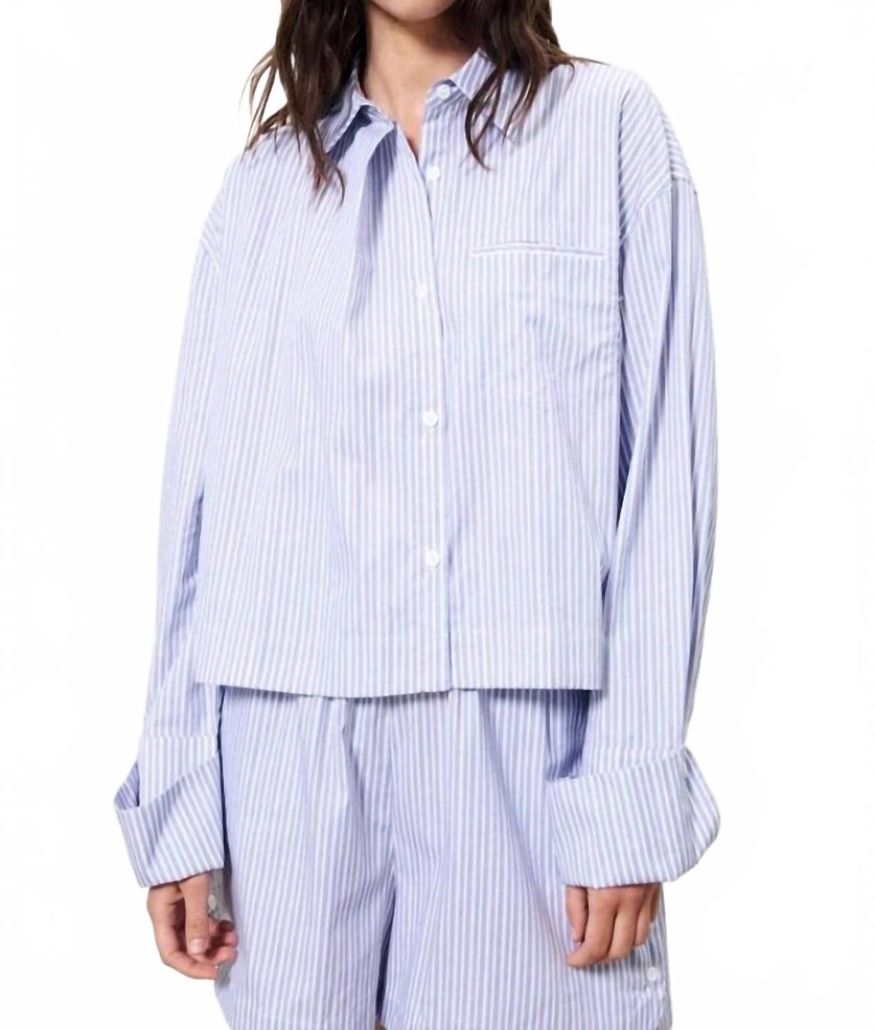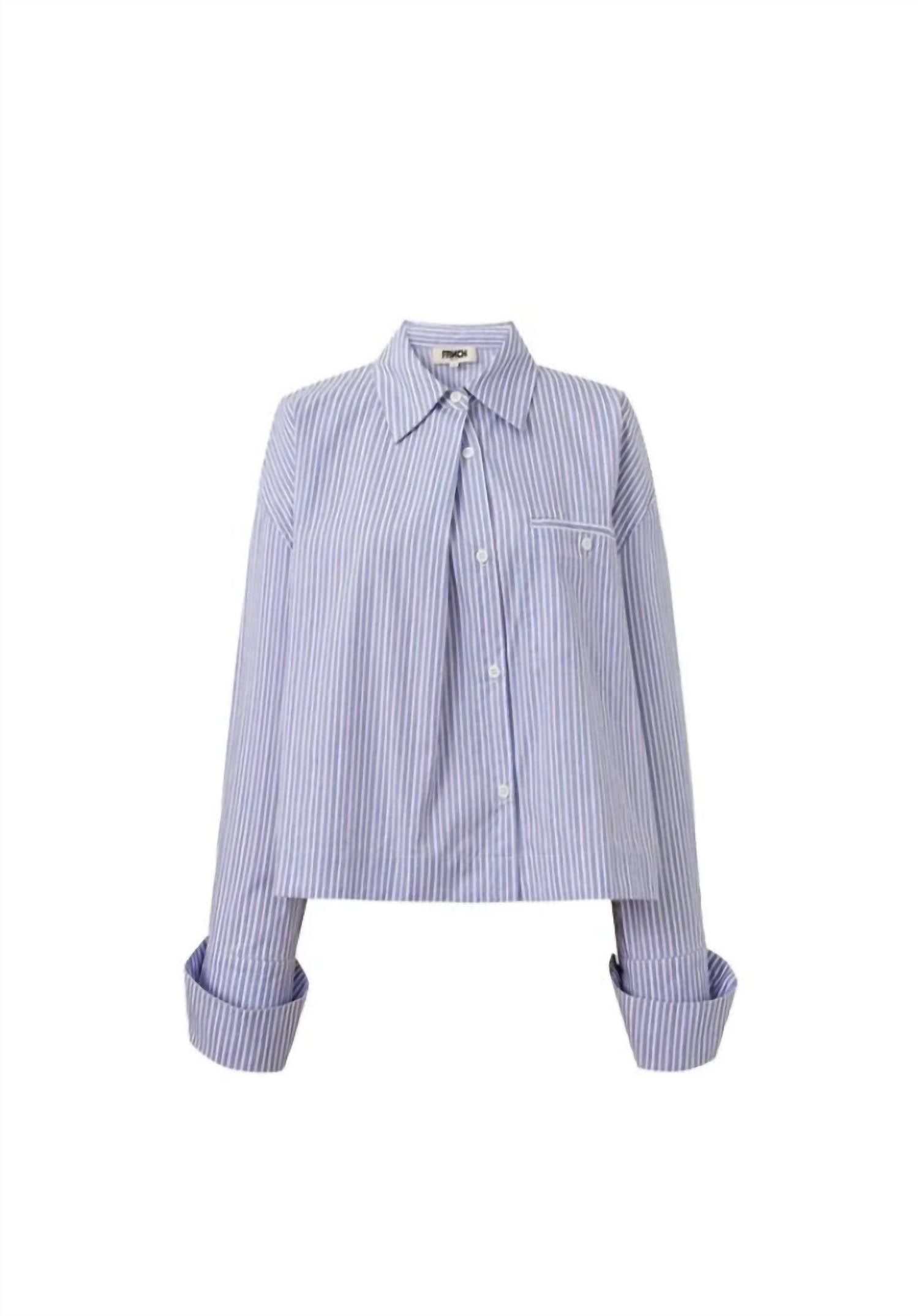 Рубашка Naela - укороченный топ на пуговицах из 100% хлопка, обеспечивающий воздухопроницаемость и комфорт. Длинные рукава с широкими манжетами и прямой свободный силуэт обеспечивают свободную посадку. Рубашка имеет воротник-стойку и полосатый узор. Она предназначена для повседневной носки, идеально подходит для лета и хорошо сочетается с джинсами или шортами в тон.