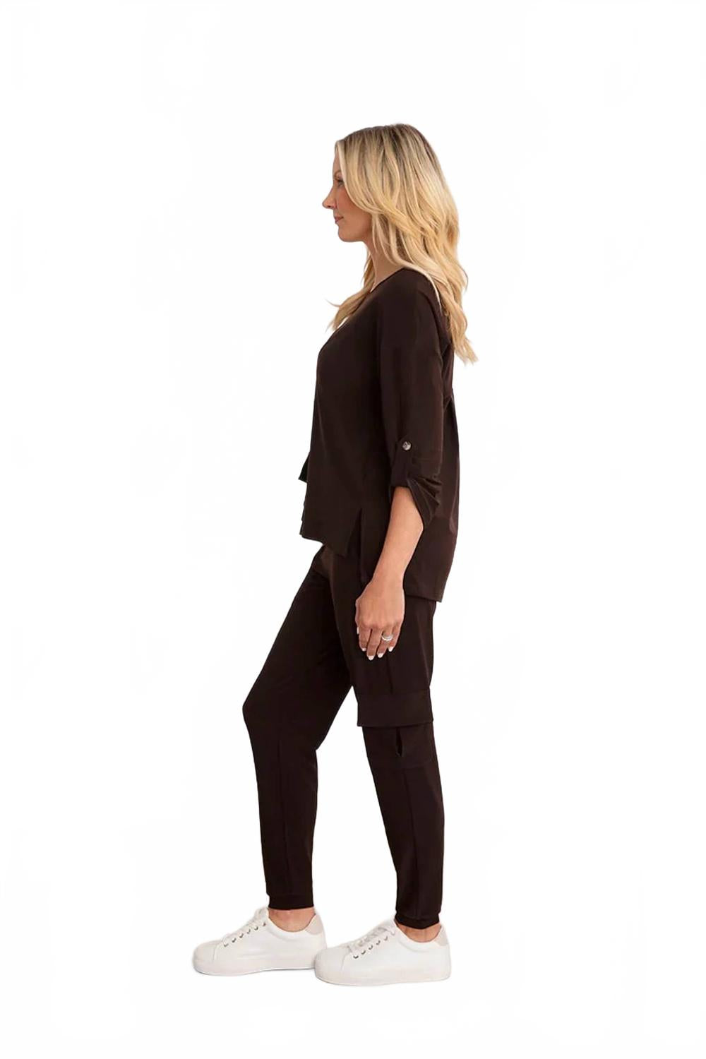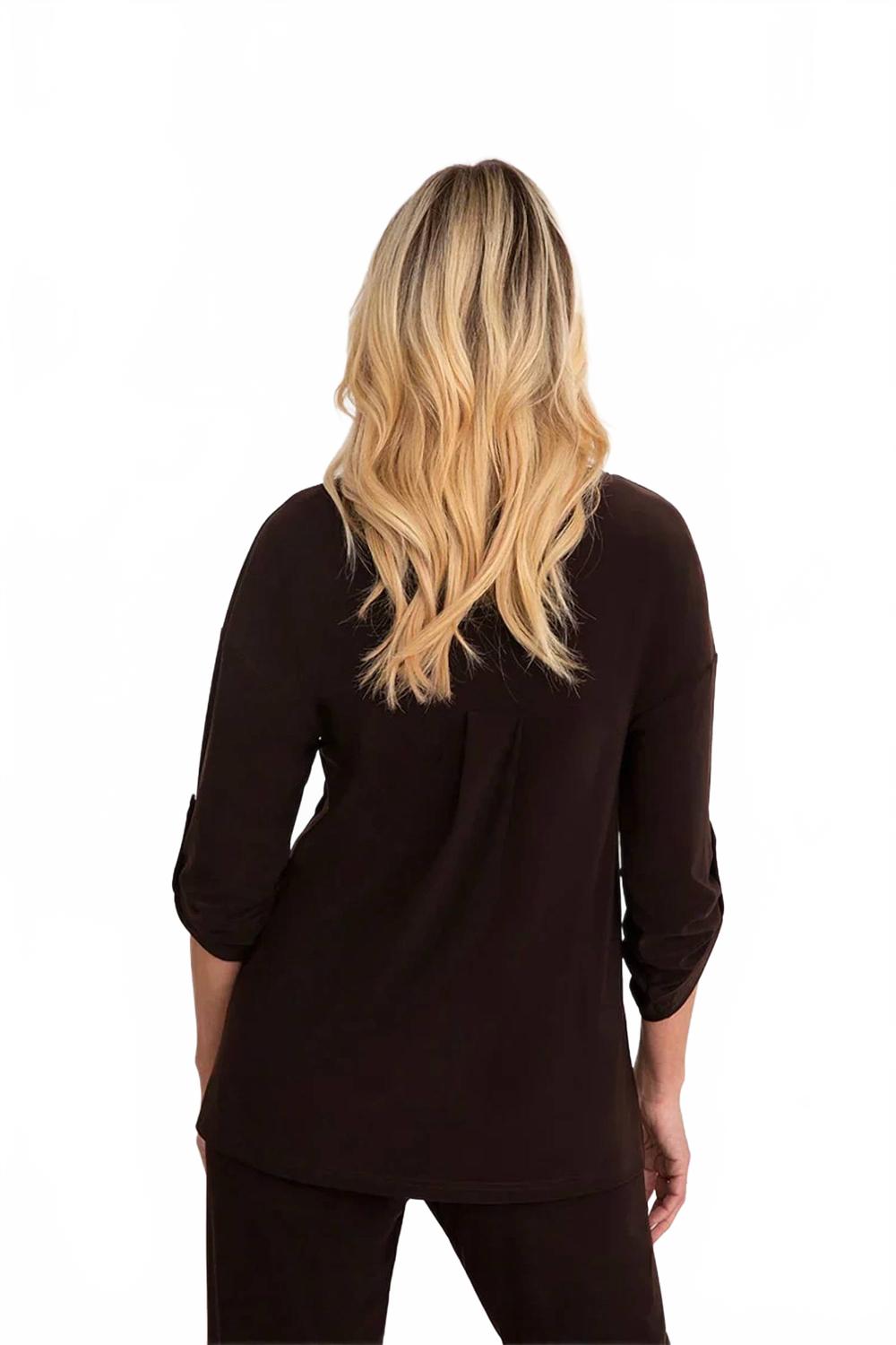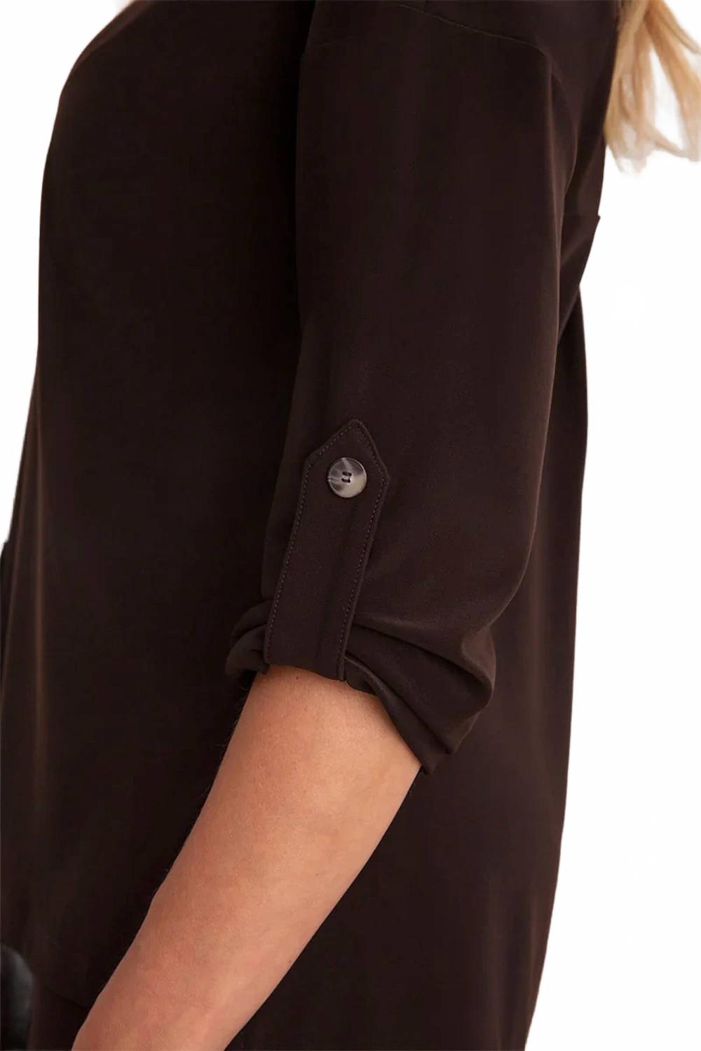 Блузка, которая никогда не выйдет из моды, вне времени. Представляем топ Safari Top от Sympli - шикарное дополнение к вашему гардеробу в насыщенном кофейном оттенке. Эта однотонная блузка с рукавами три четверти, украшенными пуговицами с мраморным черепаховым принтом, и широким круглым вырезом горловины создает современный образ. Изготовленная из 94% полиэстера и 6% спандекса, она имеет свободный силуэт, удобный передний карман с клапаном и боковые разрезы для легкой заправки. Изделие изготовлено в Канаде, застежка-липучка. Идеально подходит для машинной стирки и сушки на веревке, что обеспечивает легкий уход.