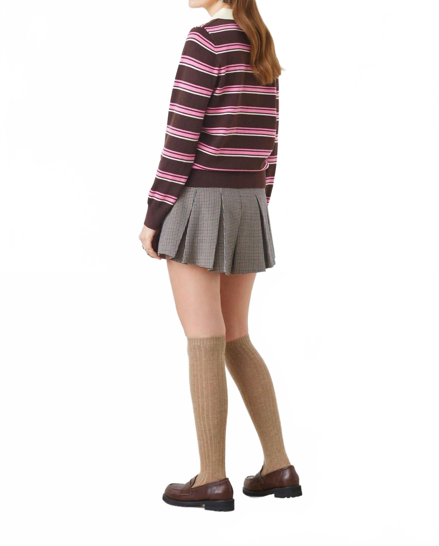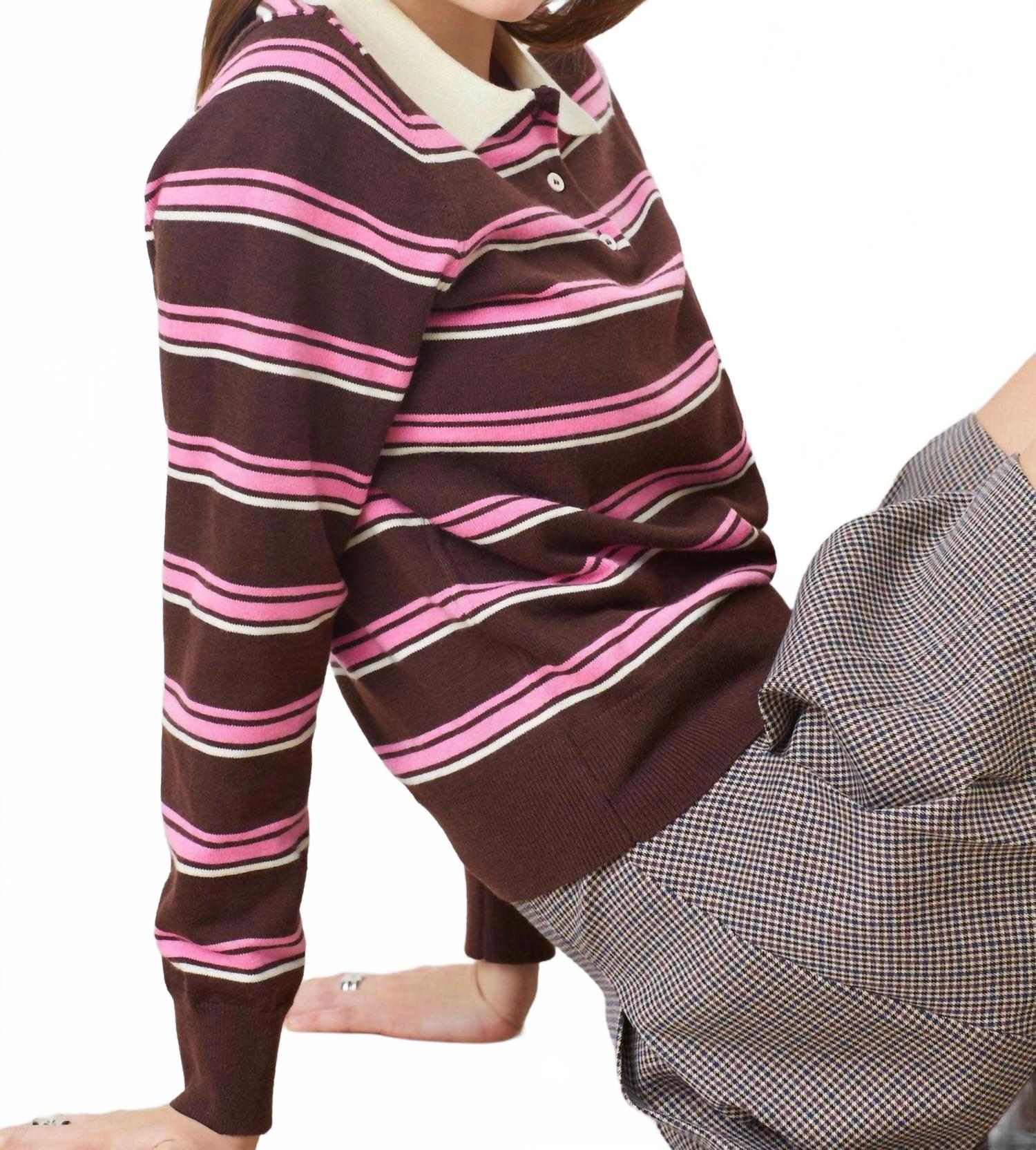Длинный топ, который можно носить с джинсами, юбками, да практически с чем угодно! Рубашка Suncoo Striped Shirt with Collar с воротником, стильными длинными рукавами и уникальным узором в сливово-розовые полосы, станет отличным дополнением вашего гардероба. Рубашка изготовлена ​​из смеси 55% полиамида, 20% полиэстера, 16% акрила и 9% шерсти. Она сочетает в себе комфорт и прочность, создавая изысканный образ. Белоснежный воротник и застежка на пуговицы придают ей элегантный вид, идеально подходящий как для официальных мероприятий, так и для элегантно-повседневных. Рекомендации по уходу: машинная стирка и сушка на горизонтальной поверхности, что гарантирует сохранение этой универсальной модели ее изысканного вида.