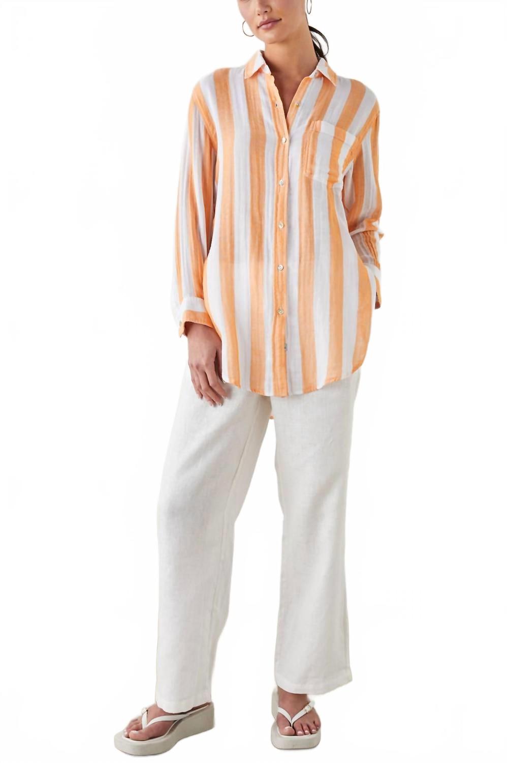 Эта рубашка на пуговицах удобная и в то же время элегантная. Дополните свой гардероб рубашкой Jaylin от Rails, вдохновленной мужской одеждой, с эффектной полоской Ortona Stripe. Эта свободная рубашка на пуговицах с длинными рукавами и классическим воротником выполнена из 100% органического хлопка. Нагрудный карман, контрастные полоски на манжетах и ​​удлиненный подол добавляют универсальности вашему стилю. Изготовленная вручную, эта рубашка сохраняет свою минималистичную элегантность, поэтому ее необходимо стирать вручную и сушить на веревке.