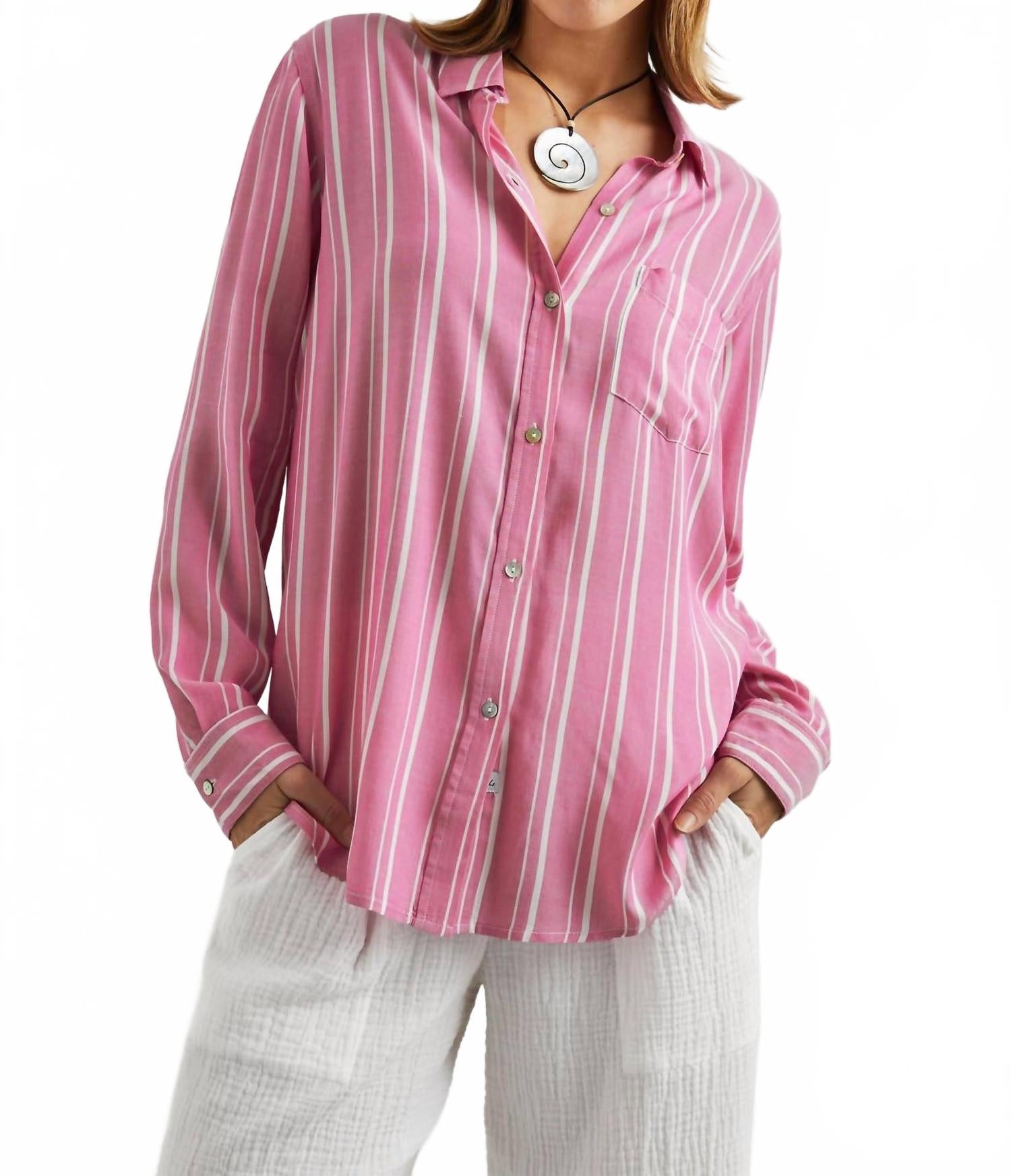 Добавьте изысканности в свой гардероб с рубашкой Gaia от Rails - шикарным выбором с ярким узором Berry Stripe. Эта рубашка с длинными рукавами и застежкой на пуговицы изготовлена из мягкого 100% вискозы и имеет длину 27 дюймов. Благодаря классическому воротнику и удобным карманам, она гармонично сочетает в себе функциональность и стиль. Для достижения наилучших результатов бережно стирайте вручную и сушите на веревке.
