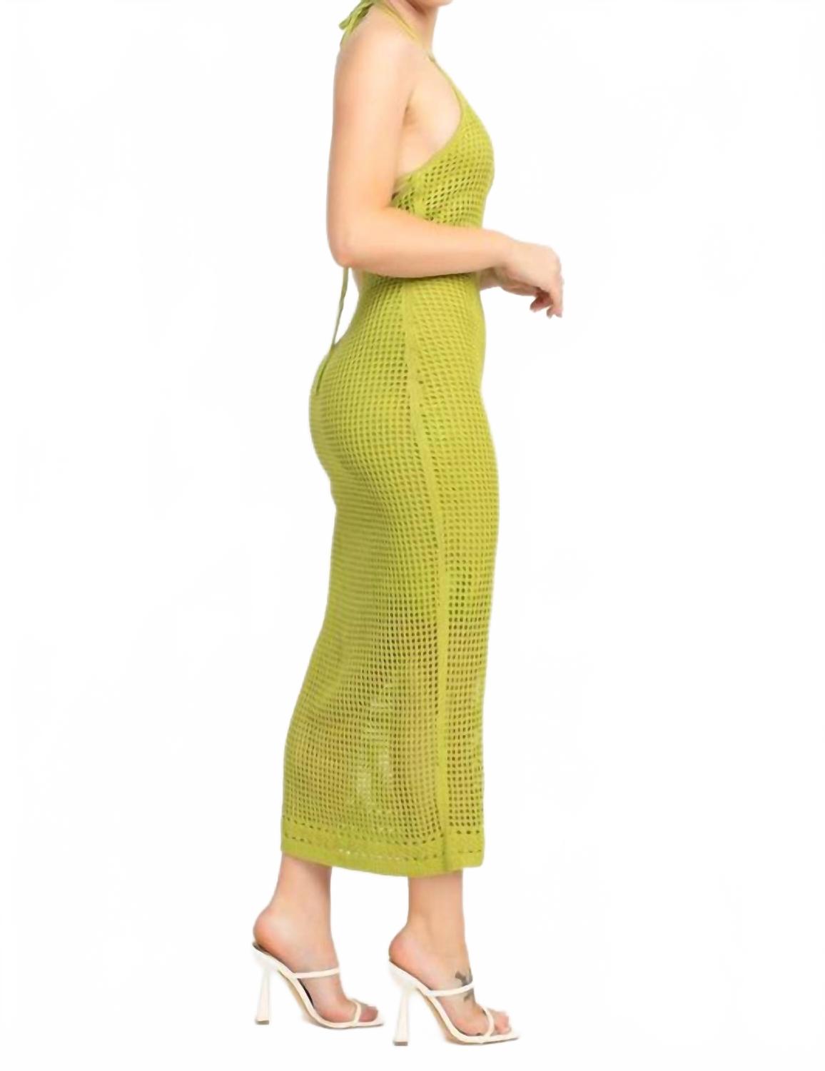 Представляем идеальное платье для тех, кто следит за модой и всегда в движении. Платье выполнено в модном уличном стиле и украшено уникальной вязаной фактурой, напоминающей ротанг. Вырез халтер и открытая спина добавляют легкую нотку очарования, а облегающий силуэт и длина миди выгодно подчеркивают любую фигуру, делая его стильным и комфортным выбором на каждый день.