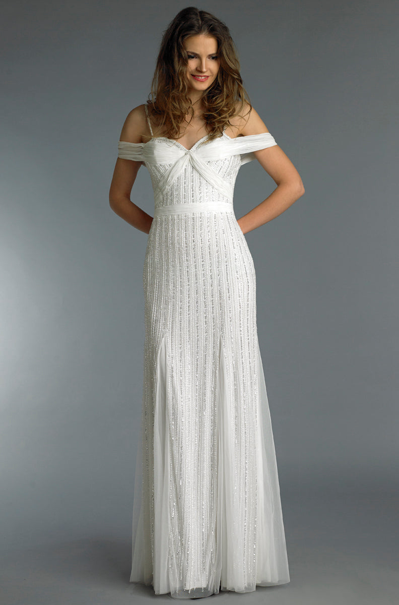 Платье-годе с открытыми плечами и пайетками Basix Black Label, слоновая кость