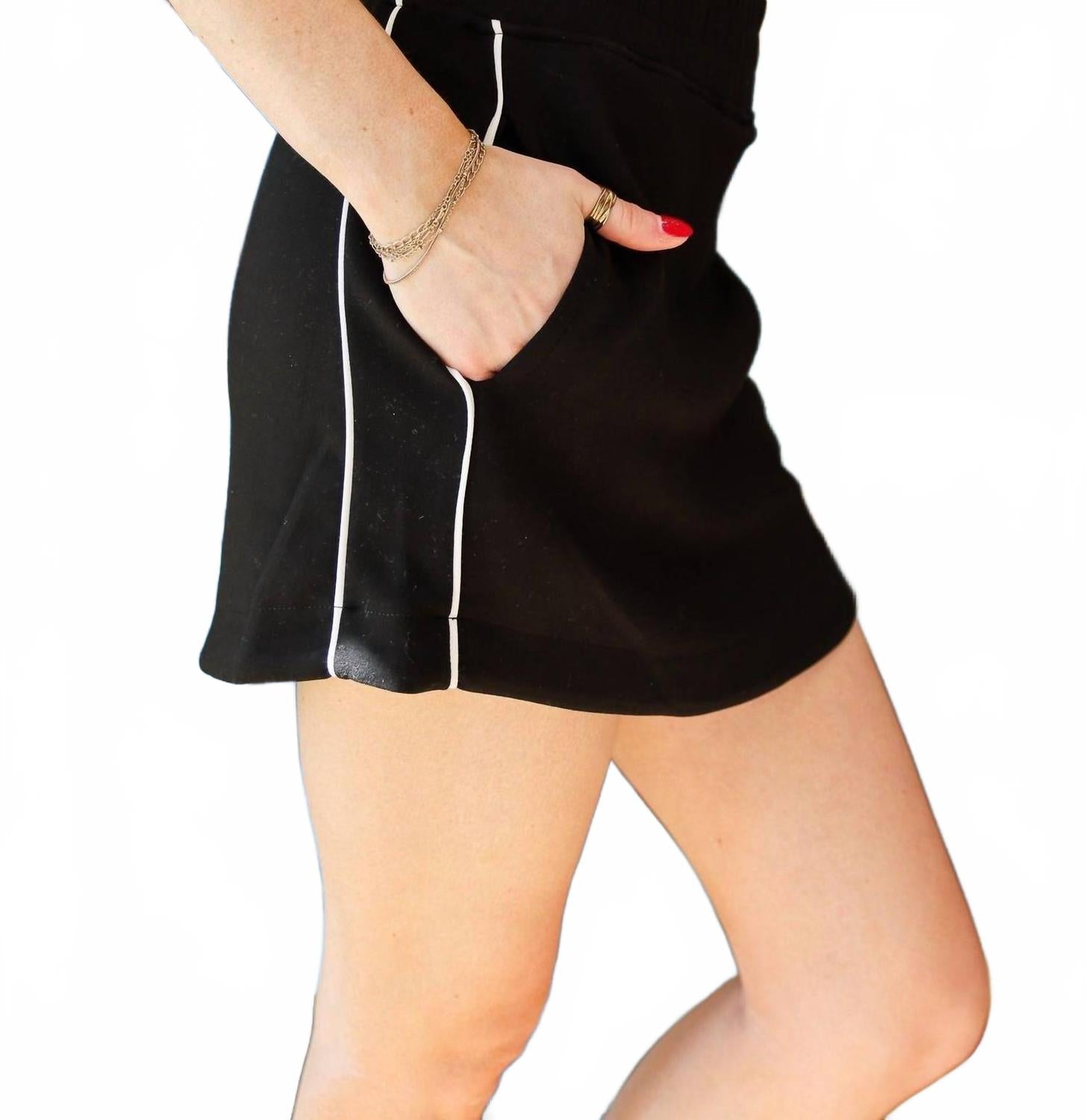 Обнажите ноги в этой облегающей мини-юбке, подчеркивающей фигуру. Представляем мини-юбку Santia Scuba от RD Style - минималистичную модель элегантного черного цвета, сочетающую в себе спортивный стиль и комфорт. Эта мини-юбка изготовлена ​​из смеси 47% полиэстера, 43% вискозы и 10% спандекса и имеет застежку-молнию для удобства надевания. Эластичный пояс с полосками и вшитые шорты на подкладке делают ее одновременно функциональной и привлекательной. Идеально подходит для весенних путешествий или празднования Дня независимости. Юбку можно стирать в стиральной машине для легкого ухода. На модели размер XS.