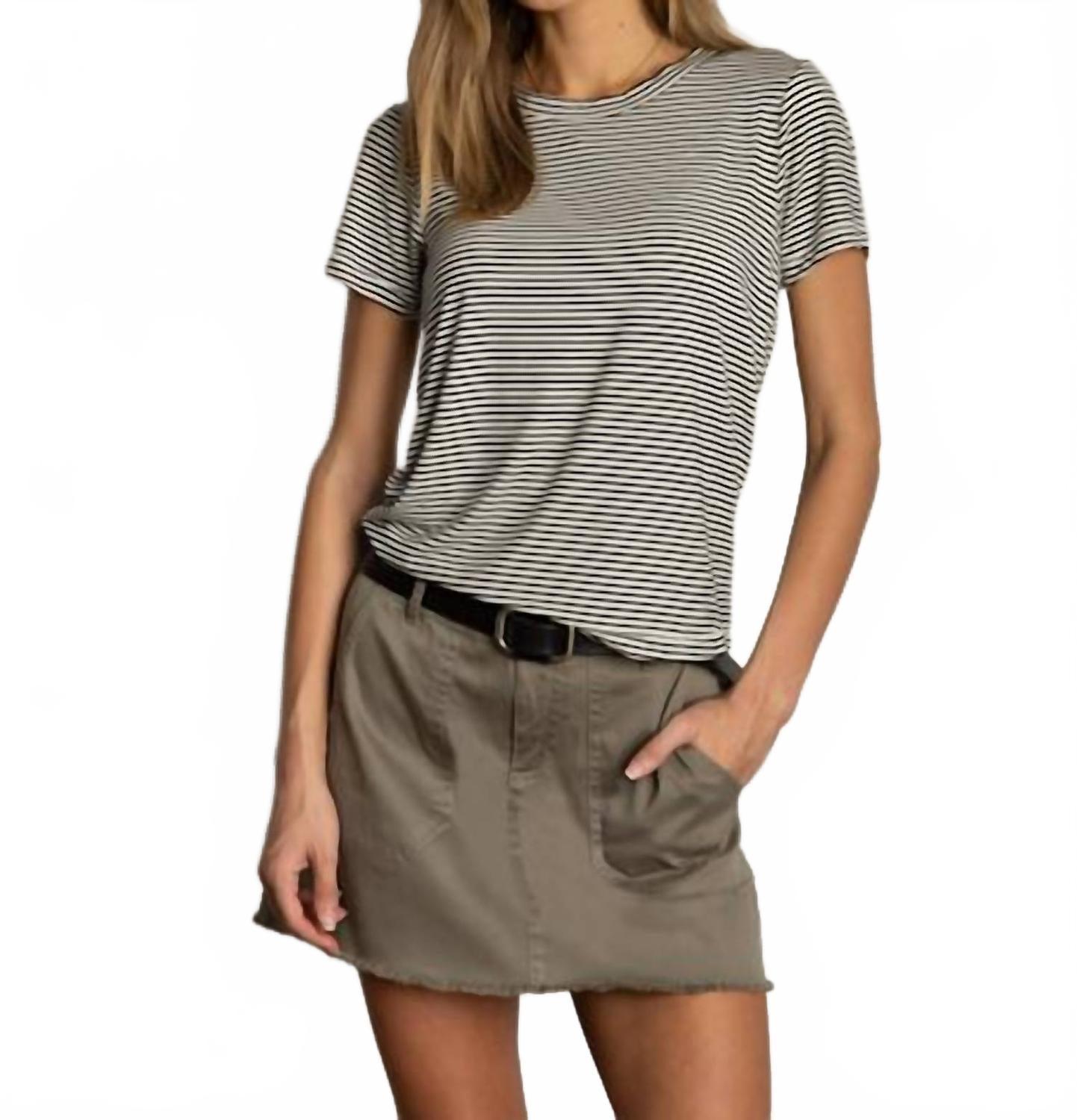 Заправьте любимую футболку, чтобы создать более непринужденный образ. Откройте для себя мини-юбку Peyton от Dylan - стильную однотонную модель оливкового цвета, идеально подходящую для вашего осеннего гардероба. Эта однотонная юбка из приятной хлопковой смеси на 77% состоит из хлопка, на 20% из тенселя и на 3% из спандекса. Юбка разработана в соответствии с женской модой, имеет практичную застежку на крючок и удобные карманы. За ней легко ухаживать: достаточно стирать в стиральной машине и сушить в стиральной машине. Идеально подходит для отпуска или празднования Дня благодарения.