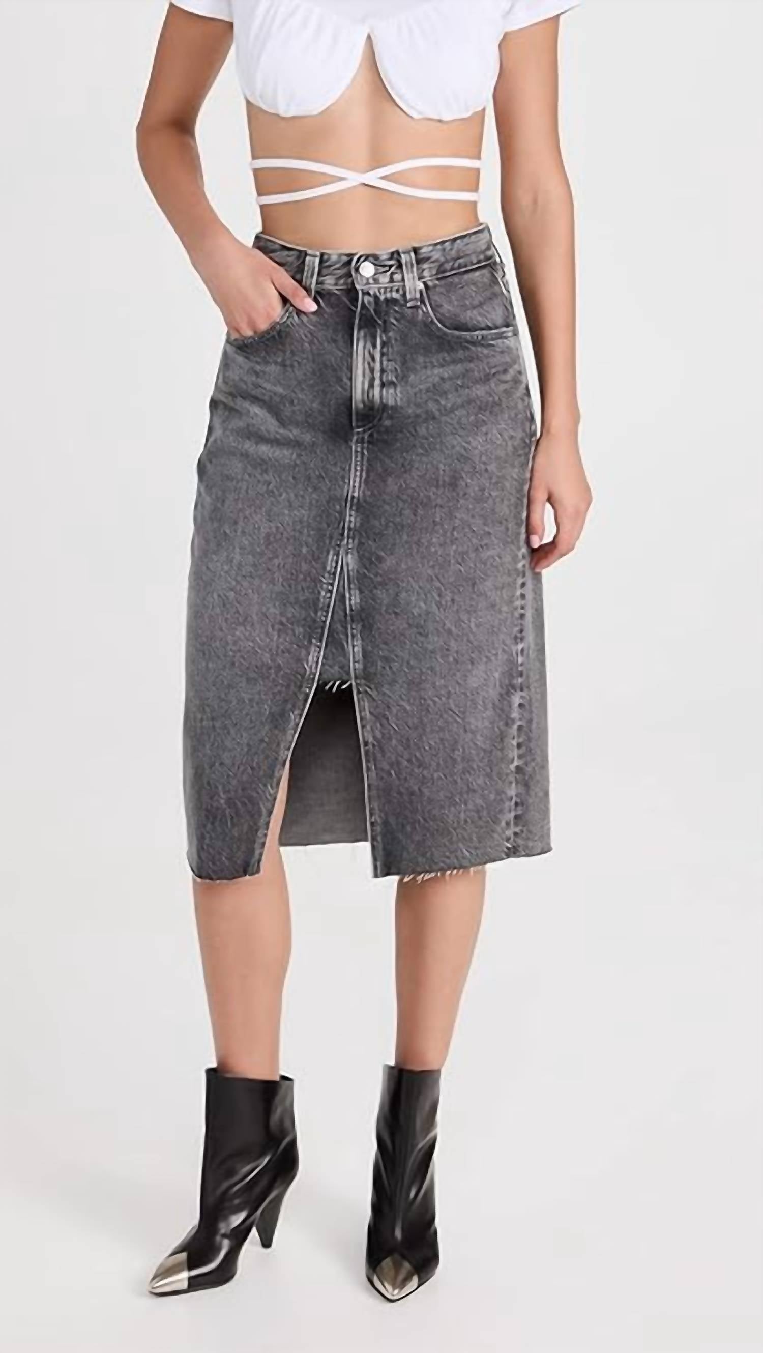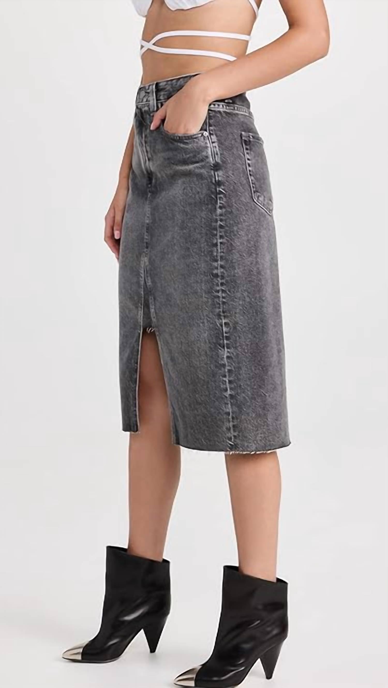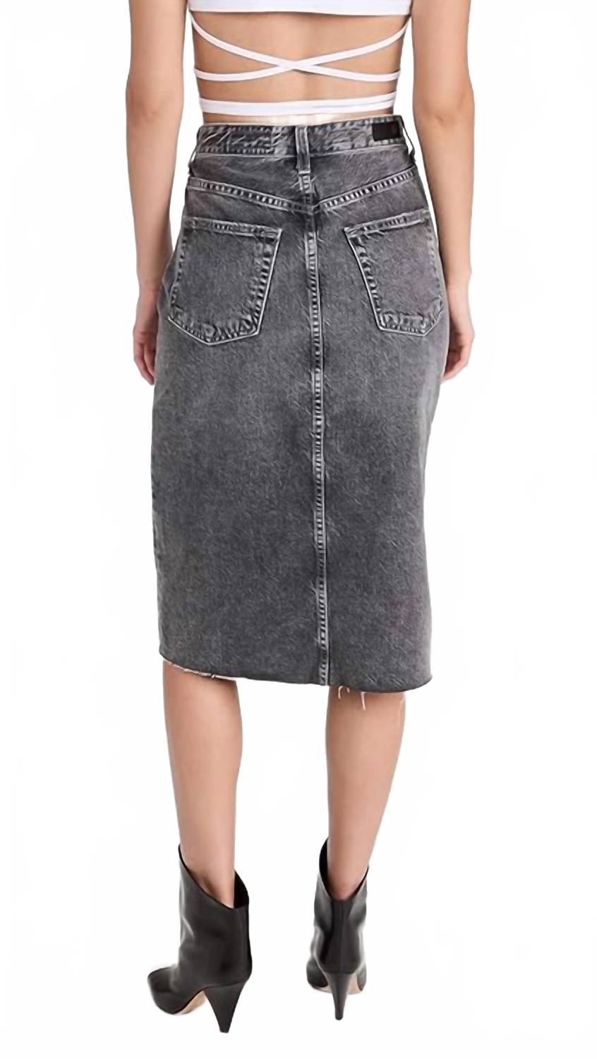 Юбка миди в моде, и нам особенно нравится эта модель. Откройте для себя юбку миди Haruko от AG Jeans - стильную модель Distortion с винтажным А-силуэтом и глубоким разрезом спереди. Эта джинсовая юбка цвета черного денима, изготовленная из смеси 82% хлопка и 18% лиоцелла, отличается фактурой с высоким и низким зернистым узором. Благодаря практичному крою с пятью карманами и необработанному низу длиной чуть ниже колена, она идеально подходит для лета или мероприятий по случаю Дня благодарения. Застежка на пуговицы идеально сочетает в себе комфорт и классический стиль.