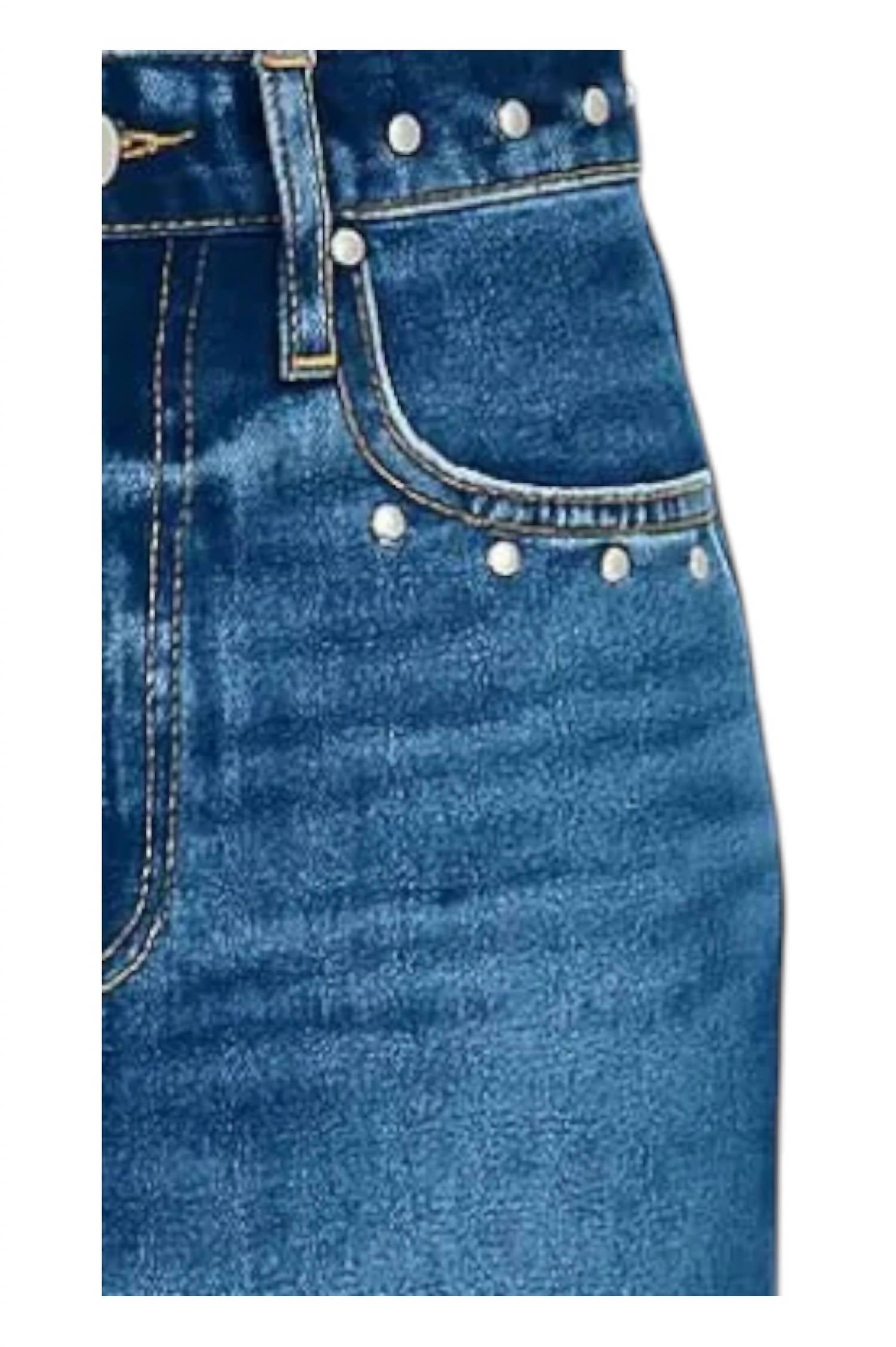 Идеальная мини-юбка существует. Представляем мини-юбку Skye от PISTOLA - эффектную модель синего цвета, идеально подходящую для лета. Эта мини-юбка с высокой талией, выполненная из денима средней степени стирки, украшена стильными серебристыми заклепками на поясе и карманах. Практичный дизайн с пятью карманами дополняется надежной застежкой на пуговицы и молнии, что делает ее универсальным выбором как для дневного, так и для вечернего образа. За ней легко ухаживать: достаточно стирать в стиральной машине и сушить в стиральной машине.