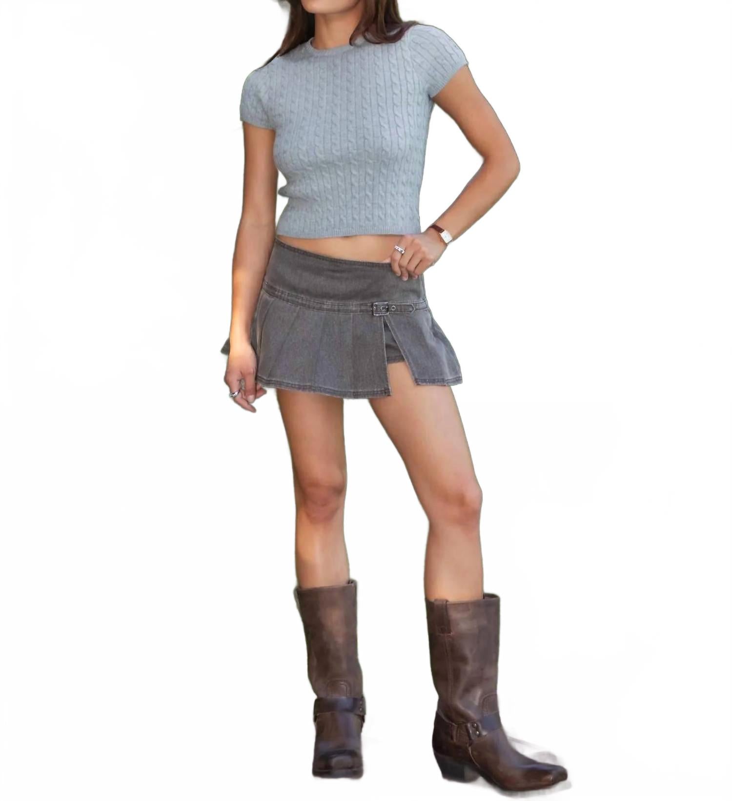 Заправьте любимую футболку, чтобы создать более непринужденный образ. Представляем мини-юбку Luche Denim Washed от TIC TOC - игривый взгляд на классический деним. Эта модель в уличном стиле выполнена из однотонного коричневого материала с вшитыми шортами для комфорта и защиты, а плиссированный крой с запахом выгодно подчеркивает фигуру. Состав: 90% хлопок, 10% полиэстер. Застежка: молния. Уход: машинная стирка, сушка в стиральной машине. Идеально подходит для летнего отдыха или подготовки к школе.
