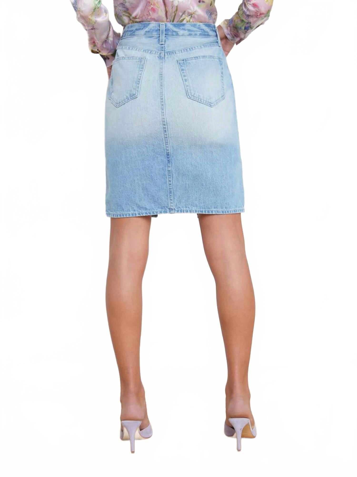 Заправьте любимую футболку, чтобы создать более непринужденный образ. Встречайте юбку длиной до колена Tylee от L'Agence - минималистичную модель в шикарном белом цвете, которая подойдет для любого сезона. Эта джинсовая юбка из хлопка отличается кокетливым разрезом по низу и классическим дизайном с пятью карманами. Аутентичная винтажная потертость делает ее универсальной как для летних поездок, так и для прохладных осенних дней. Застежка - пуговицы. Уход - машинная стирка.