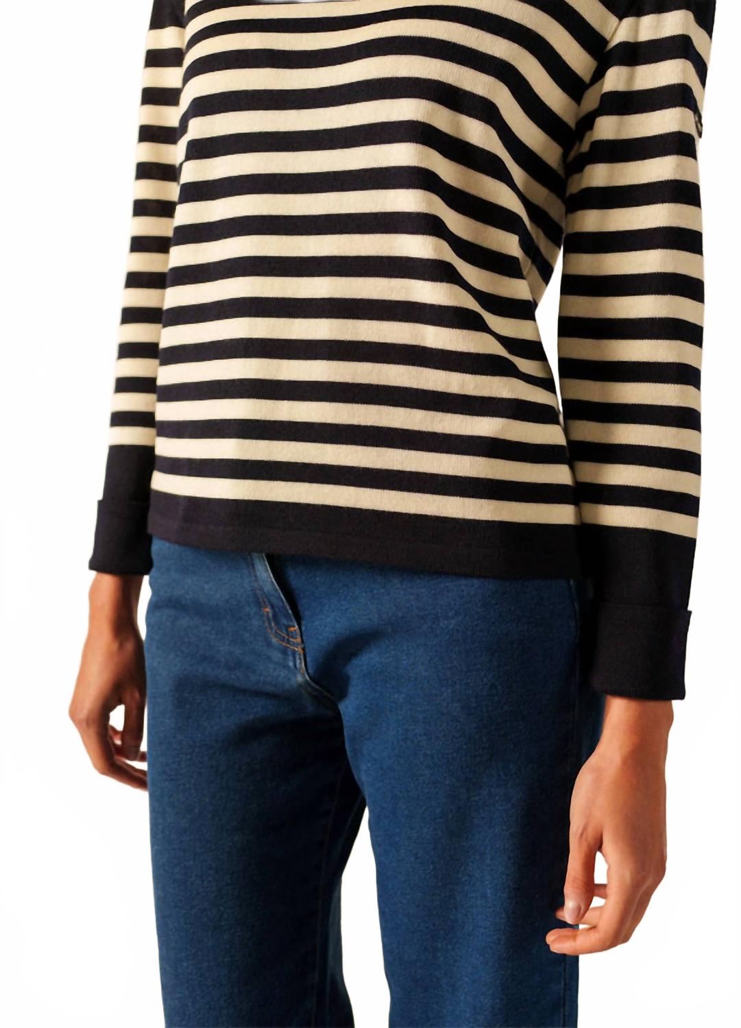 Представляем полосатый джемпер Ecrins от SAINT JAMES - идеальное сочетание стиля и комфорта для переменчивой погоды. Этот джемпер с длинными рукавами с отворотами и характерным круглым вырезом горловины выполнен из тонкой шерсти, обеспечивая тепло и легкость. Джемпер застегивается на застежку для удобства и требует ручной стирки. Он идеально подходит для осени. Состав: шерсть (100%).