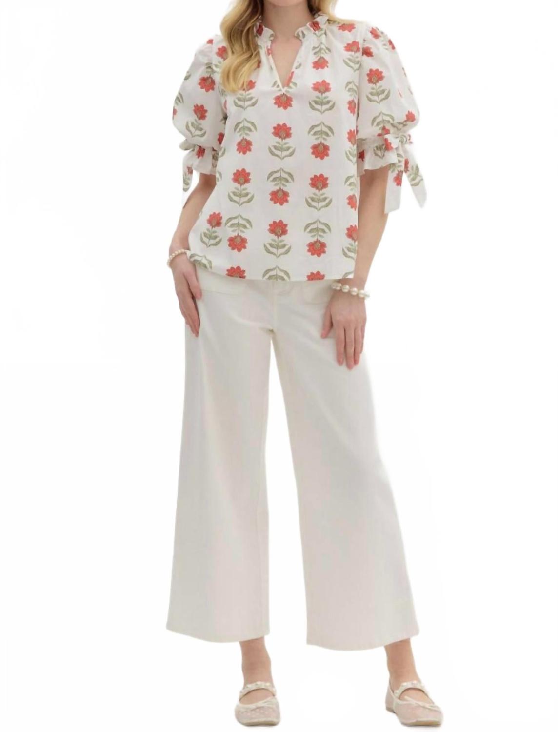 Сочетайте его с любимыми джинсами и шлепанцами для следующей девичьей вечеринки. Представляем топ-пуловер с цветочным принтом от Entro - очаровательное дополнение к любому весеннему гардеробу. Эта женская блузка с короткими рукавами-фонариками на резинке, украшенными бантом, и V-образным вырезом с оборкой, создающим игривый штрих. Этот тканый, непрозрачный топ обеспечивает удобную посадку и застегивается на застежку. Модель представлена ​​с нежным цветочным узором. Обхват груди: 40 дюймов (маленький), 42 дюйма (средний) и 44 дюйма (большой). Длина: от 23 до 25 дюймов.