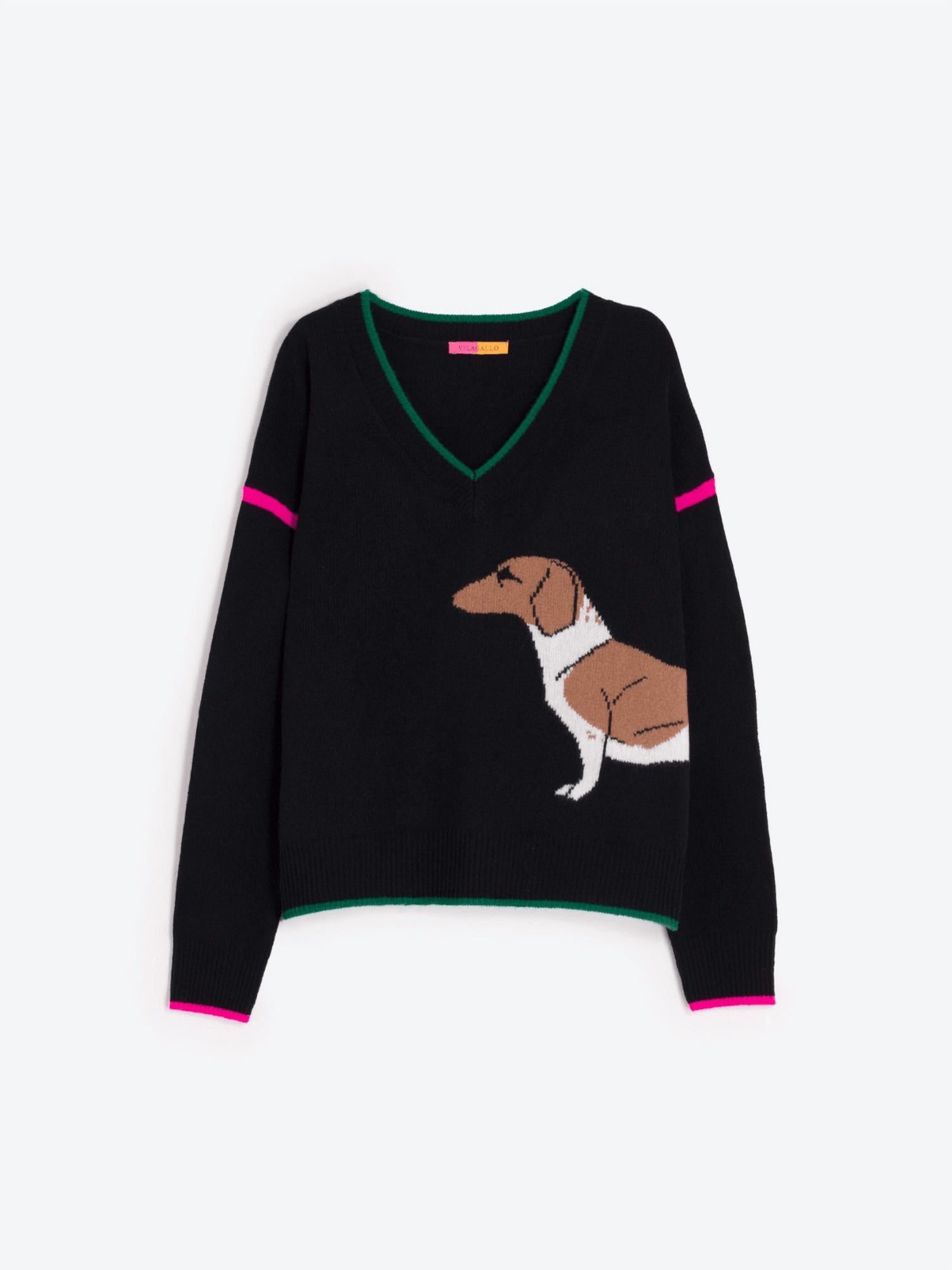 Яркий свитер с принтом собаки в черном цвете Vilagallo, черный