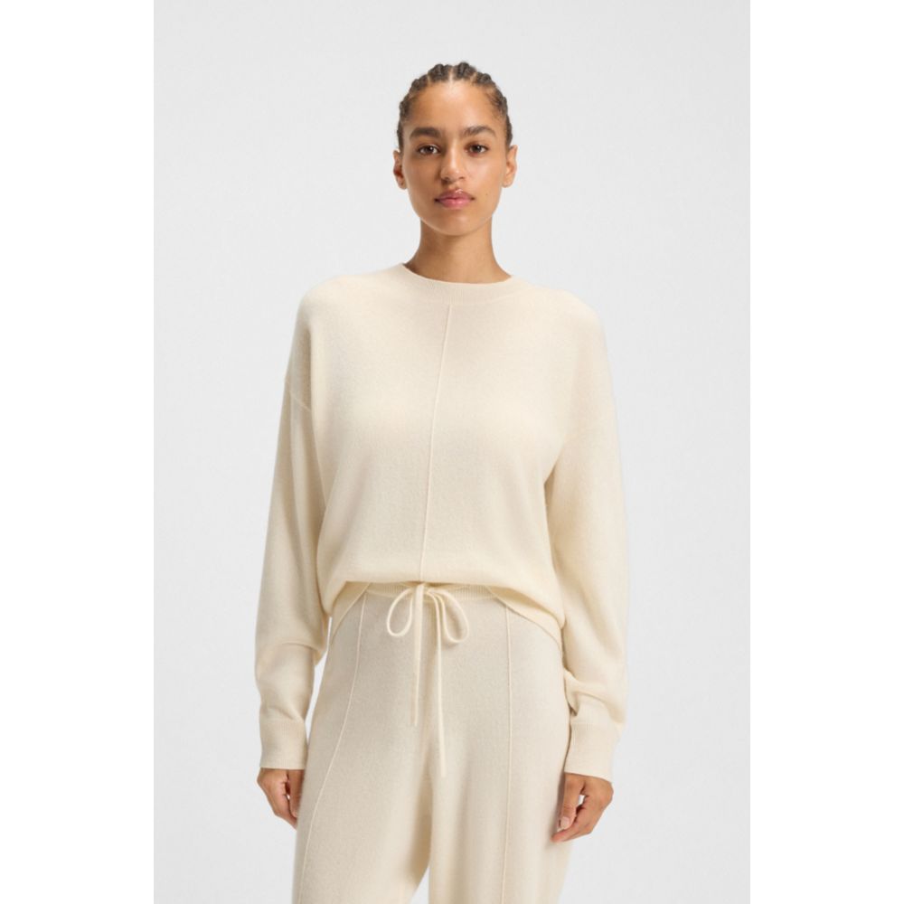 Украсьте свой трикотаж роскошным мягким кашемиром этого свободного женского свитера BOSS. Изящные швы. Удобный круглый вырез.