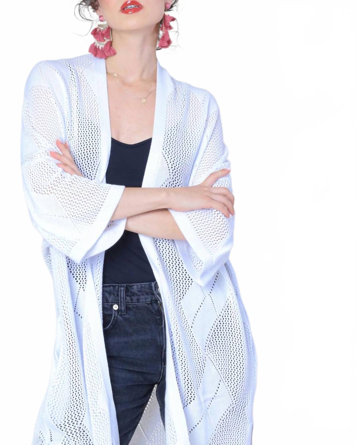 Накиньте этот очаровательный кардиган поверх любой майки или топа. Дополните свой образ кардиганом Pattern Knit от Funsport с рукавами три четверти и удобной конструкцией, которую можно надевать без застежки. Этот кардиган изготовлен из комфортной и легкой смеси 81% вискозы и 19% хлопка, что делает его идеальным вариантом для многослойного ношения в любое время года. Этот белый кардиган с открытым передом, боковыми разрезами и удобными боковыми карманами сочетает в себе стиль и практичность. Рекомендации по уходу: стирка в холодной воде и сушка на горизонтальной поверхности для оптимального сохранения цвета.