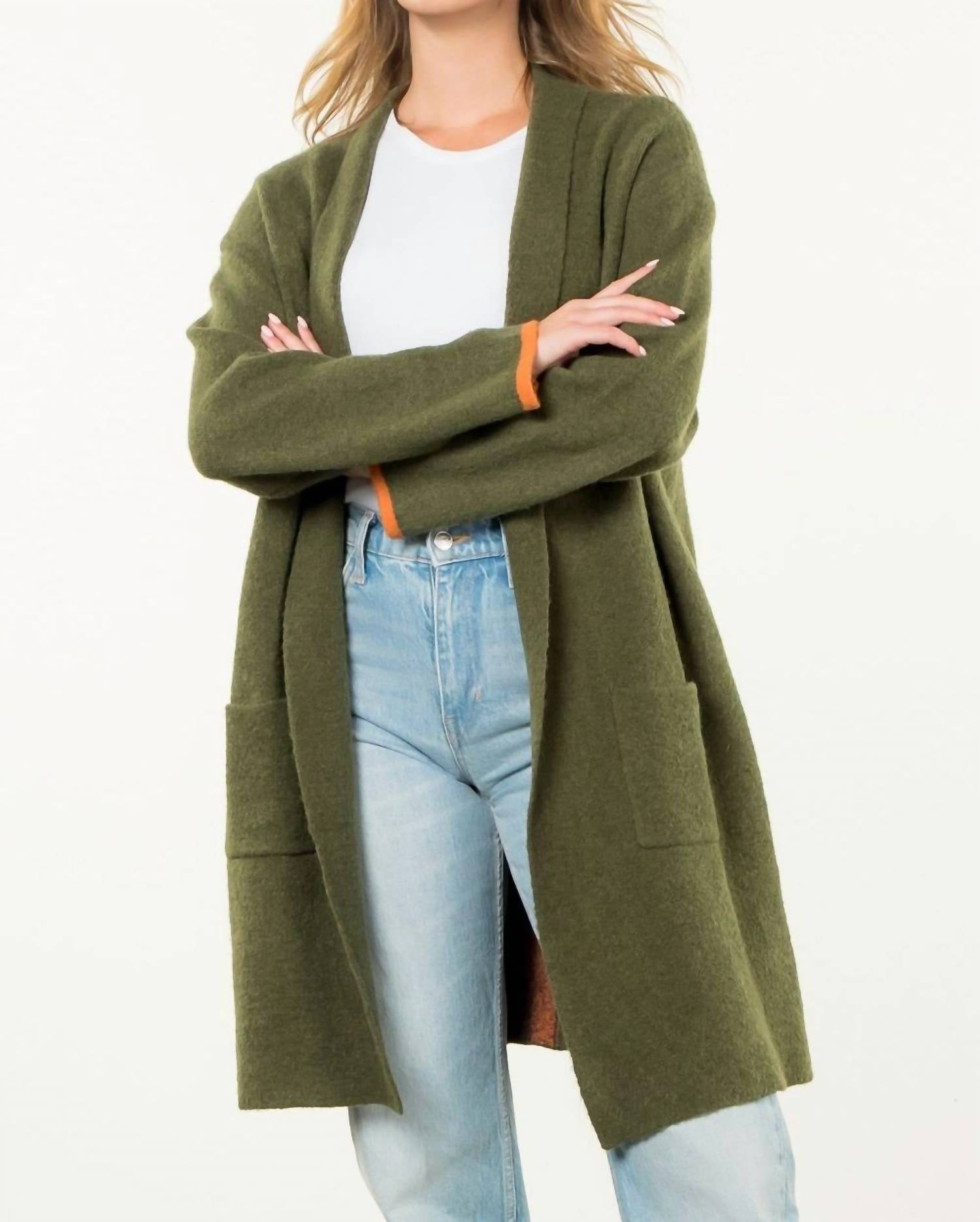 Этот кардиган станет вашим любимым свитером. Откройте для себя непреходящее очарование кардигана Whitney от THML, минималистичного трикотажа насыщенного зеленого оттенка. Этот кардиган с длинными рукавами, удобной застежкой-липучкой и привлекательным V-образным вырезом идеально подойдет для вашего осеннего гардероба. Продуманный до мелочей, он дополнен функциональными карманами для дополнительной практичности. Этот прочный и универсальный кардиган идеально подходит для многослойного образа в отпуске.