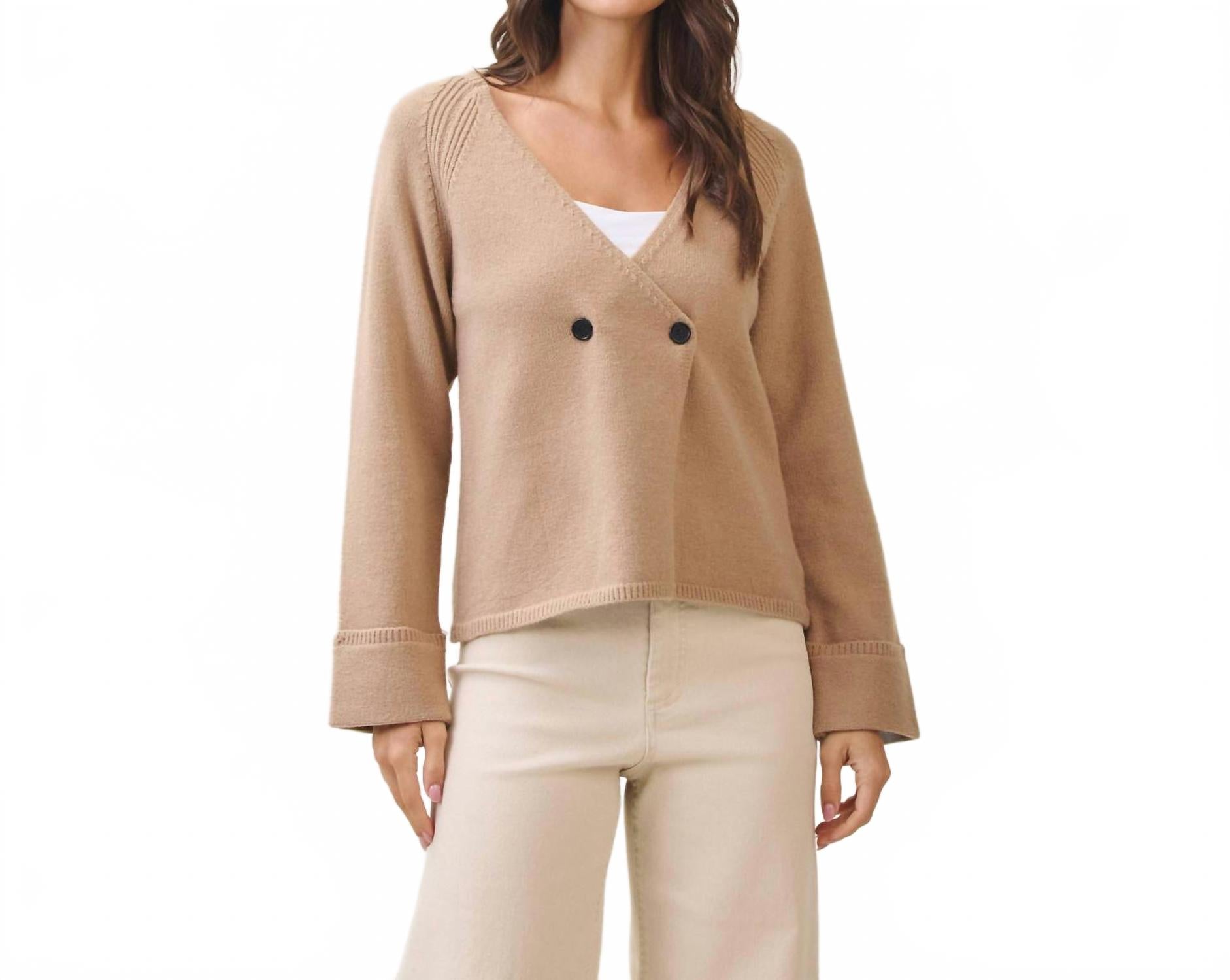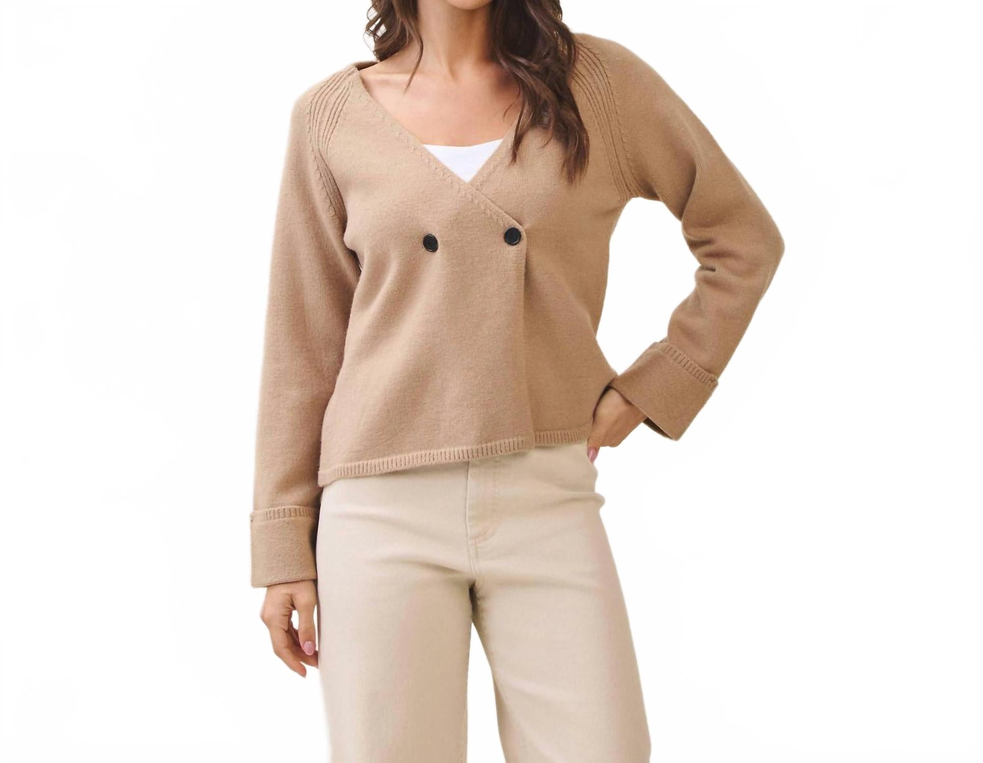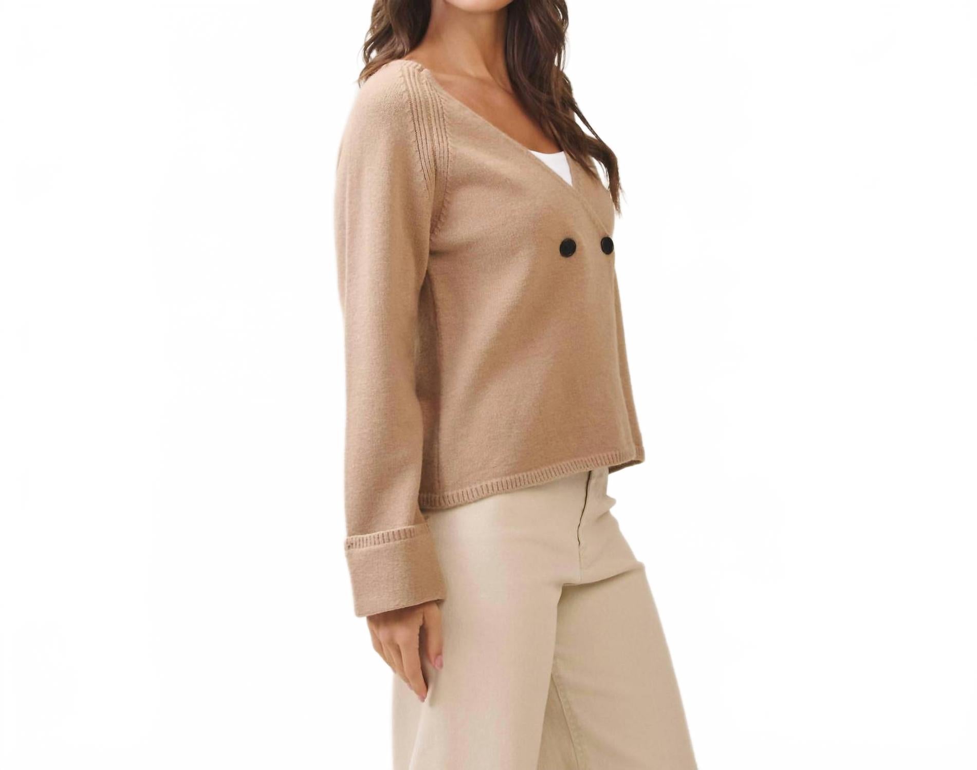 Представляем кардиган Double Button Cardigan от ABLE - минималистичный базовый предмет гардероба насыщенного цвета мокко, идеально подходящий для осени. Этот женский кардиган с V-образным вырезом и длинными рукавами обеспечит стильный и теплый образ на отдыхе или во время празднования Дня благодарения. Однотонный узор и застежка на пуговицы добавят элегантности вашему образу.