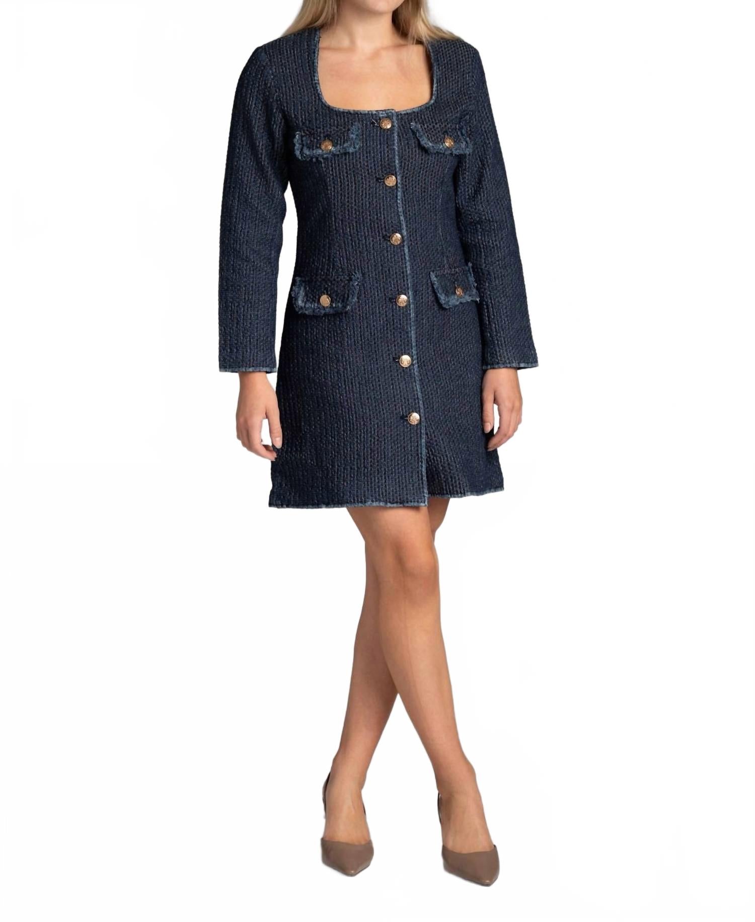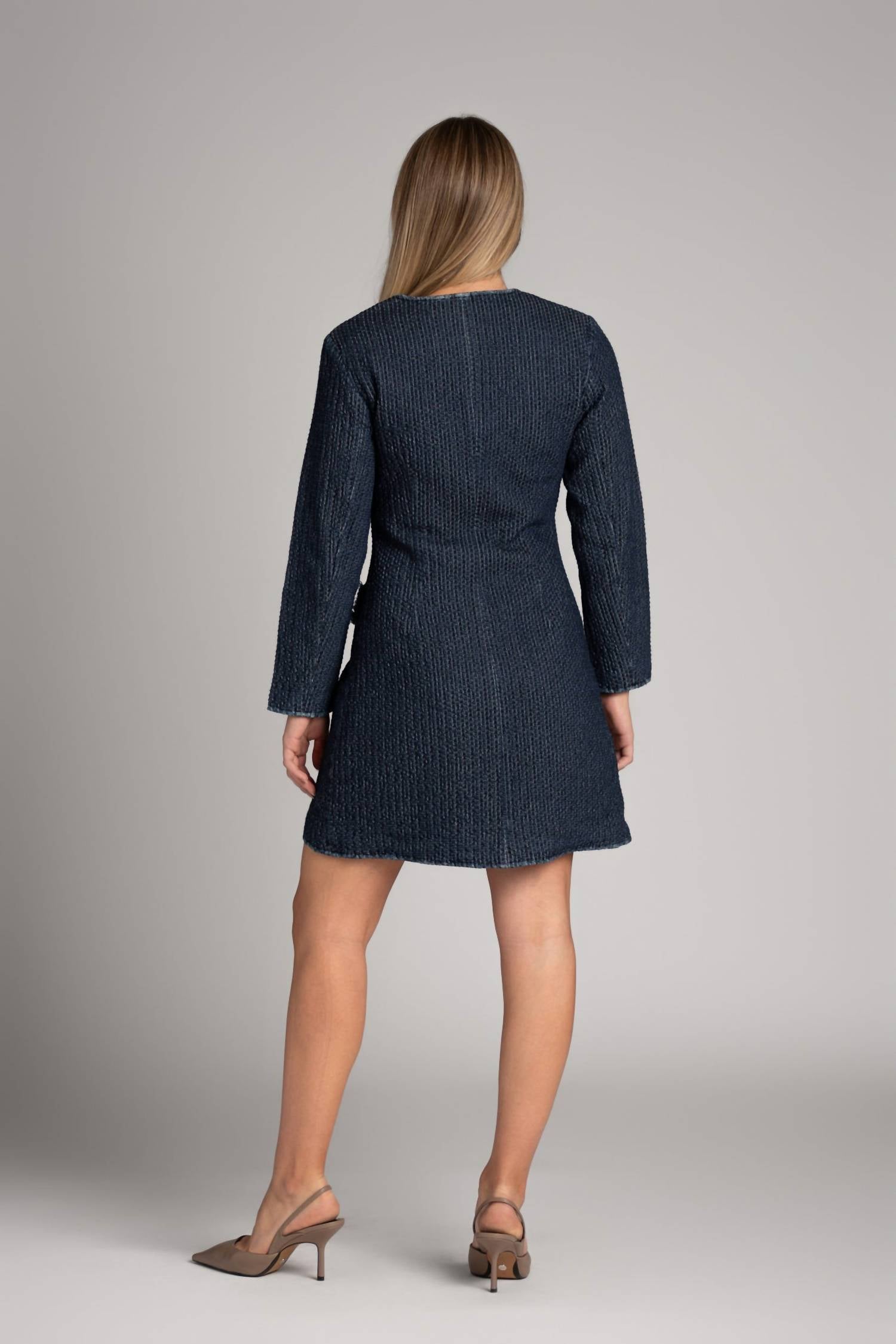 Короткое и воздушное платье для теплых дней. Платье Denim Lady от Suncoo станет шикарным дополнением к вашему гардеробу для отпуска. Это фактурное платье в винтажном стиле из синего джинса. Это женское мини-платье с длинными рукавами и А-силуэтом выполнено из хлопковой смеси и застежки на декоративных пуговицах. Внешний слой - 100% хлопок, а внутренний - 100% полиэстер, что обеспечивает плотный крой. Рекомендации по уходу: ручная стирка и сушка на горизонтальной поверхности, что делает его идеальным выбором для весенних праздников и Дня благодарения.