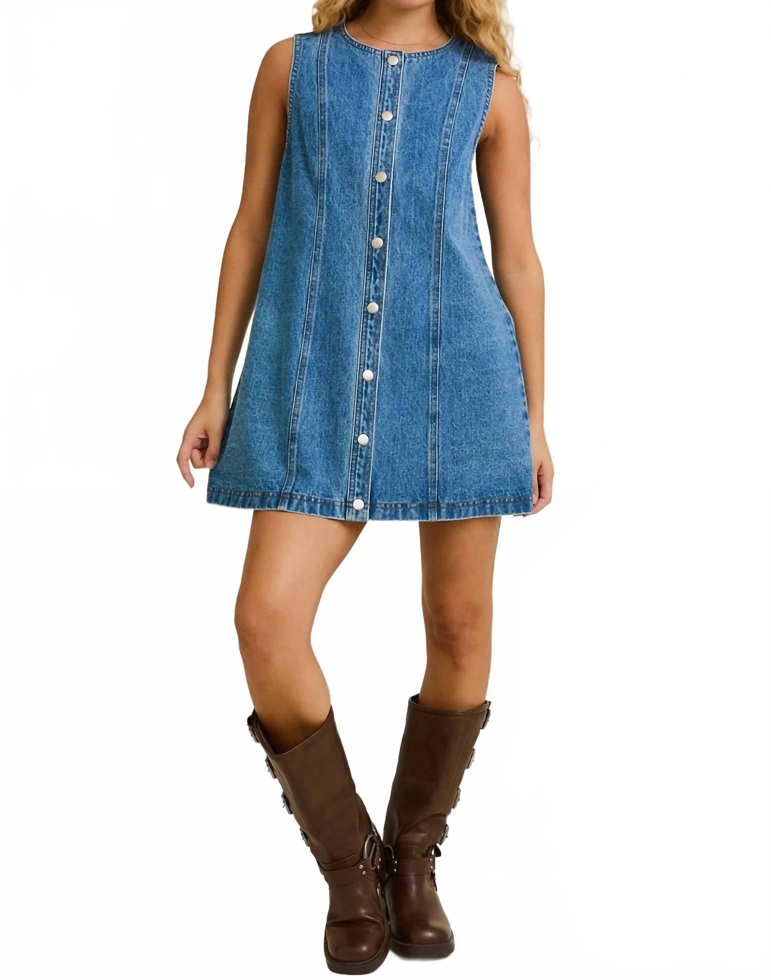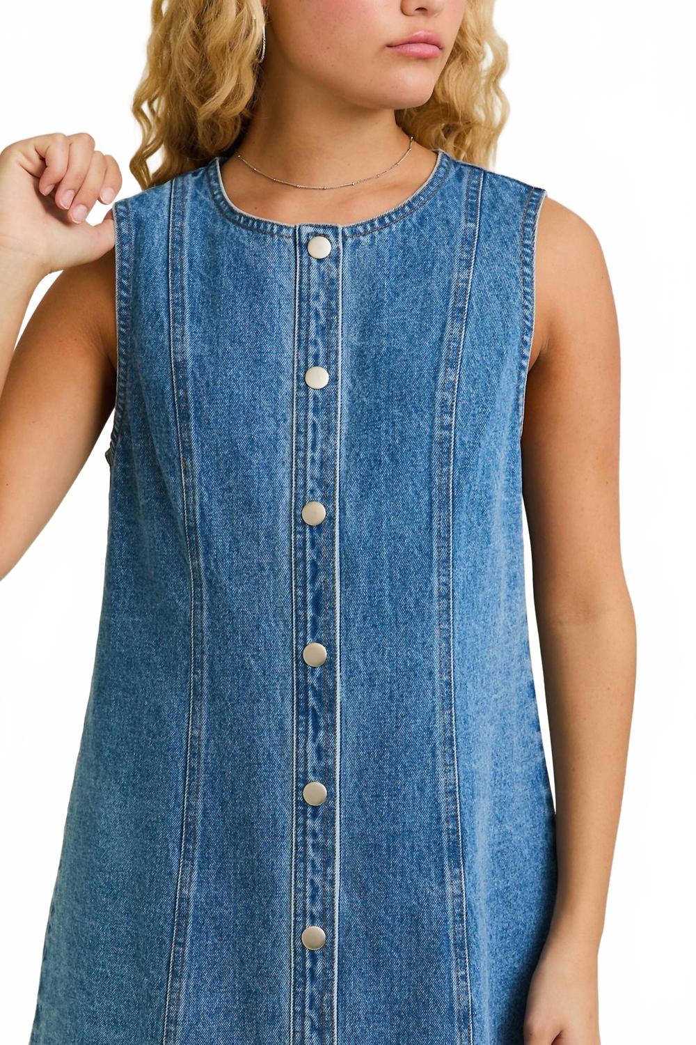 Короткое и воздушное платье для теплых дней. Окунитесь в летний стиль с джинсовым платьем LE LIS на пуговицах - минималистичной вещью, идеально подходящей для любого отпуска. Это платье без рукавов, прямого силуэта, с круглым вырезом и текстурированным джинсовым кроем классического синего цвета. Платье изготовлено из 100% хлопка, обеспечивает комфорт и воздухопроницаемость в теплые солнечные дни. Застежка - на пуговицы спереди. Уход очень прост: машинная стирка и сушка в стиральной машине.