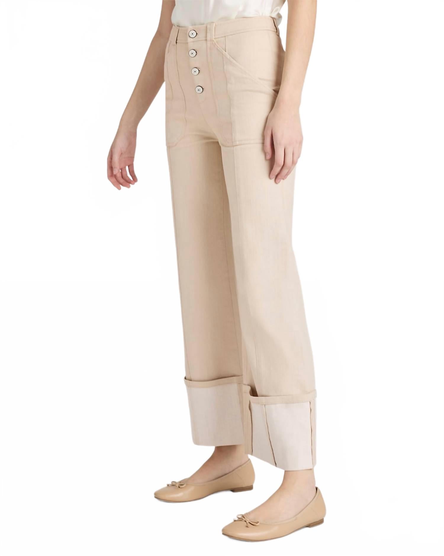 Добавьте изысканности в свой гардероб с брюками Benji с манжетами от Cinq à Sept - стильным выбором для любого весеннего случая. Эти брюки цвета хаки с высокой посадкой (примерно 11,5 дюйма) и внутренним швом длиной 29 дюймов изготовлены из комфортной смеси 75% хлопка, 24% полиэстера и 1% эластана. Свободный крой, подчеркивающий бедра, и расклешенные штанины, а также накладные карманы спереди и сзади обеспечивают дополнительную функциональность. Застежка на пуговицы и шлевки для ремня дополняют этот минималистичный образ, а укороченная длина добавляет современный штрих. Уход: только химчистка. Эти брюки идеально подходят для праздничной вечеринки, сочетая в себе стиль и комфорт.