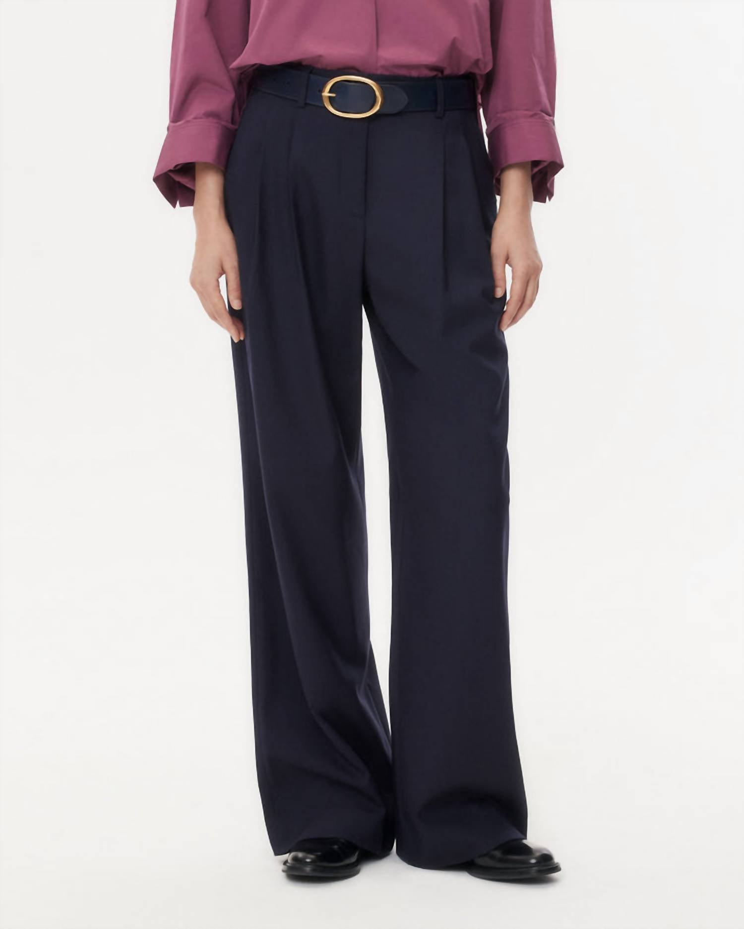 Дополните свой рабочий гардероб узкими брюками Sullivan от TWP, тщательно продуманными для стиля и комфорта. Эти брюки с высокой посадкой и широкими штанинами обеспечивают свободную посадку благодаря защипам спереди, которые визуально увеличивают объем вашего ансамбля. Изготовленные из изысканной шерстяной смеси, состоящей из 98% шерсти и 2% эластана, они оснащены функциональными шлевками для ремня, боковыми карманами и потайной застежкой на молнию и крючок. Эти брюки изысканного полночного оттенка требуют химчистки для сохранения элегантного вида. На модели: рост 175 см, обхват груди 86 см, обхват бедер 88 см, размер 2.