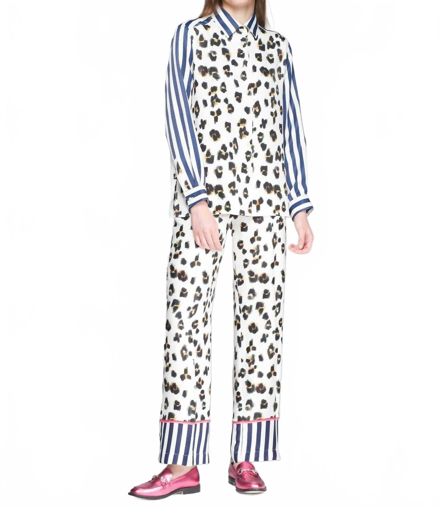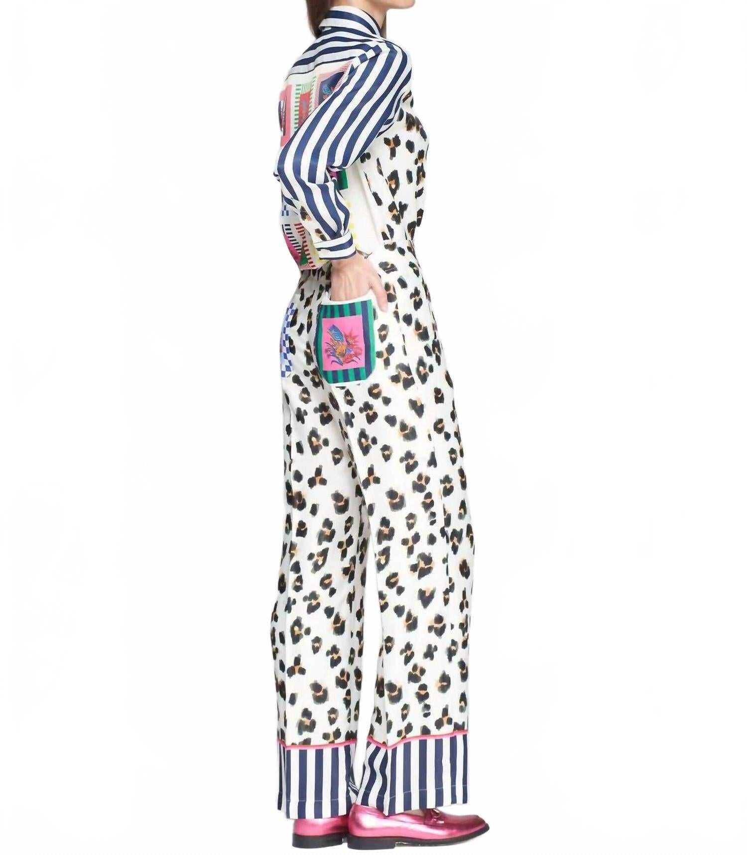 Прямые брюки, которые актуальны из сезона в сезон. Носите их с любимой блузкой или с повседневной футболкой. Откройте для себя брюки Elena Leopard от Vilagallo - эффектную модель, сочетающую в себе максималистские тренды и изысканный образ. Эти женские прямые брюки украшены анималистичным принтом и стильным контрастом темно-синих и белых полосок на подоле, дополненным накладными карманами сзади. Высокая посадка и эластичный пояс обеспечивают комфорт, а также они выполнены из роскошной вискозной ткани. Дополните образ рубашкой в ​​тон, чтобы завершить образ, идеально подходящий для весеннего ужина.